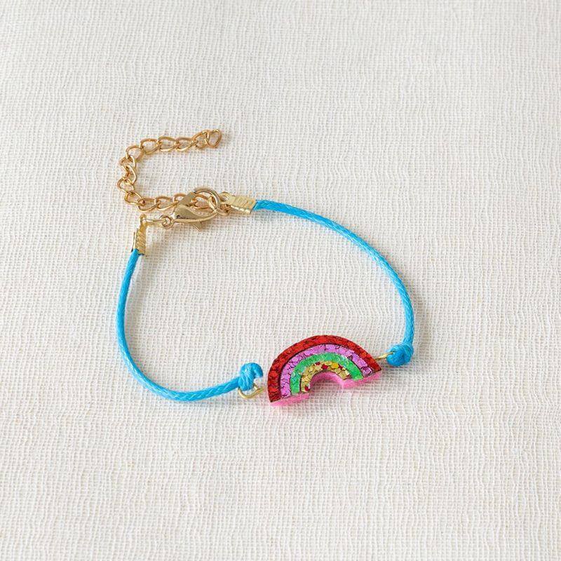 Детска бляскава гривна за момиче - Дъга Rex London е чудесен начин да обновите гардероба на момиченцето си. Гривната си подходяща с ежедневно и официално облекло. Детска бляскава гривна за момиче - Дъга Rex London ще развие чувството на естетика в детето. Можете да регулирате гривничката с дължина от 14 до 19 см. Разгледайте и останалите продукти от категорията "Детски бижута" ТУК!