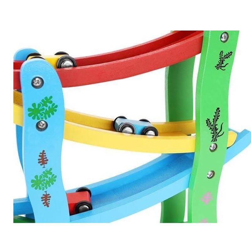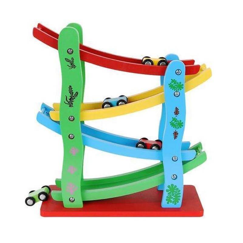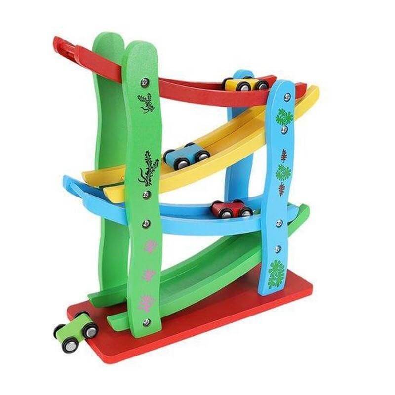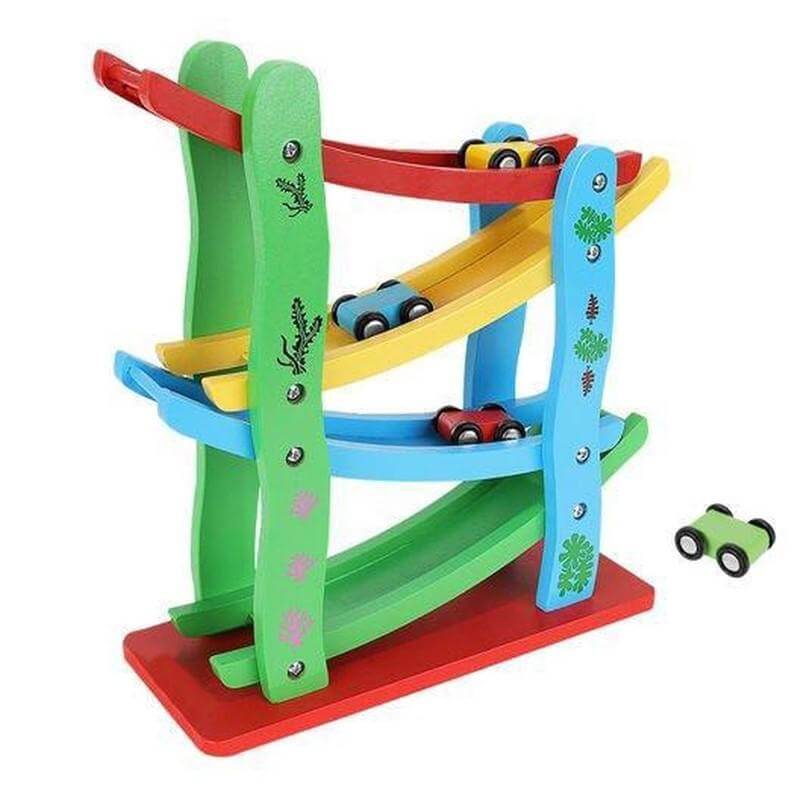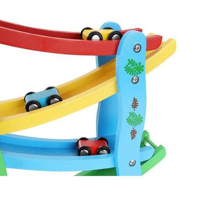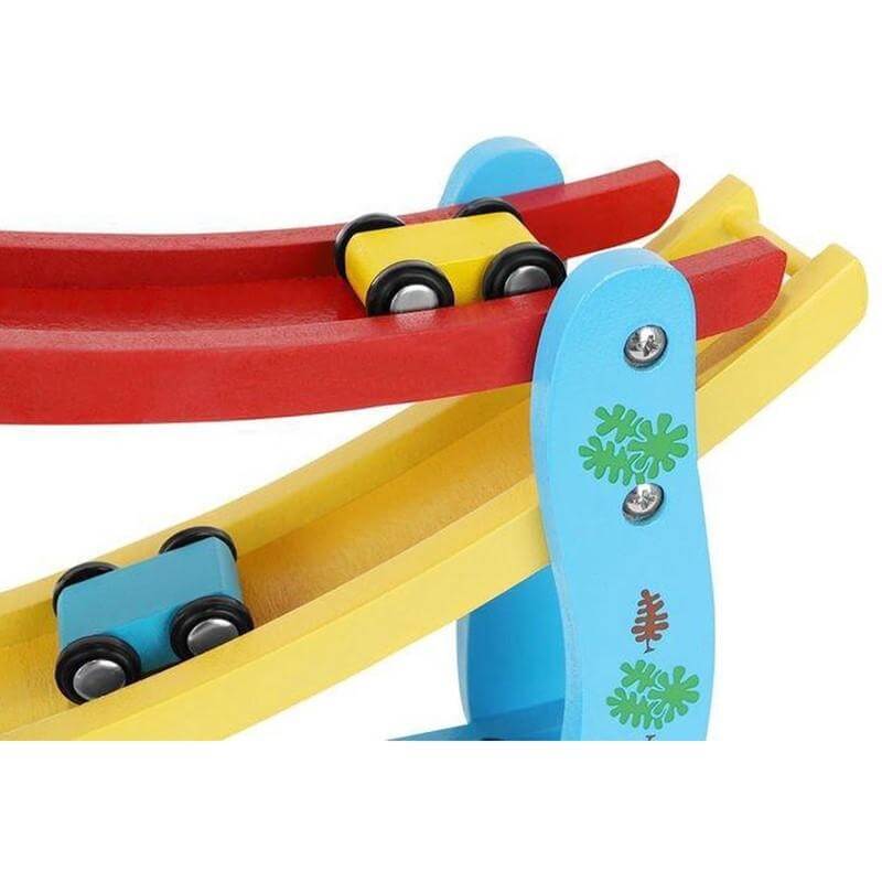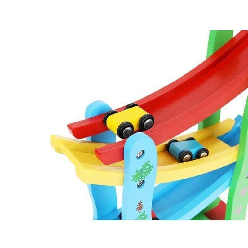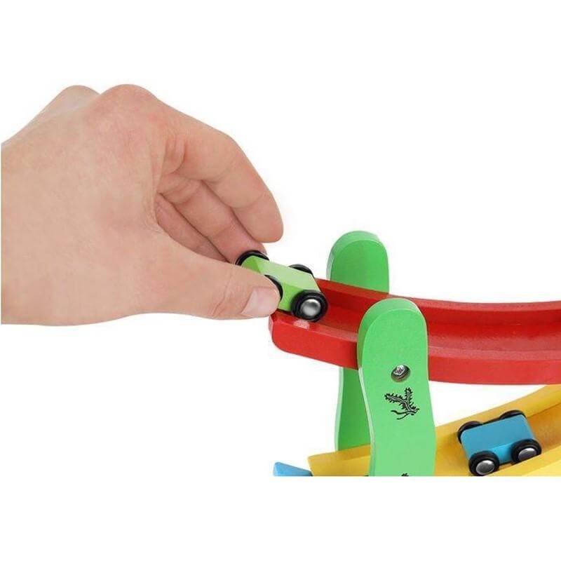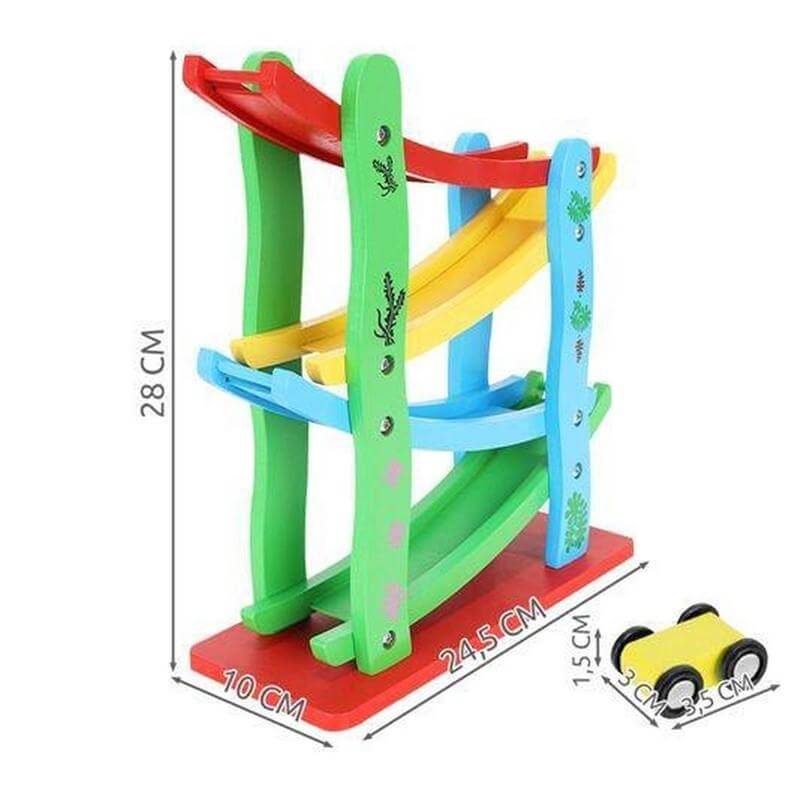 Детска дървена писта с 4 колички ще насърчи въображението и фината моторика. Изработката е от висококачествени и безвредни материали. Пистата има 4 нива и това са 4 състезателни писти, всяка в различен цвят. Когато количката е в най-високата част, детето може да я види как се спуска надолу. Детска дървена писта с 4 колички е проектирана така, че детето да може да пусне 4 колички едновременоо една след друга. Посочената цена е за 1 брой. Разгледайте още продукти в категорията "Дървени колички и камиони" - ТУК! Комплектът е изработен от негнила дървесина и може да се използва много пъти. Не се страхува от забавление - остава непокътнат дори след часове игра. Играчката се съчетава идеално с други играчки и декорации в детската стая. Комплектът съдържа: 4 колички и една писта за тях.