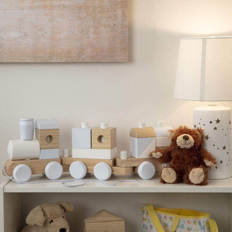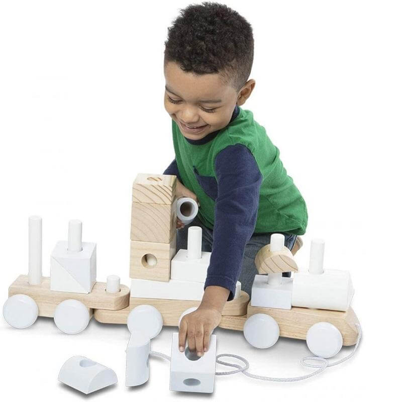 Дървено детско влакче за дърпане Melissa & Doug е страхотен подарък за всяко едно дете. В комплекта ще намерите 14 форми, които трябва да подредите и да получите конструкцията. За да стане още по-забавно и весело, към влакчето има и въженце за дърпане. Така детето може да обиколи света със своята нова любима играчка. Дървено детско влакче за дърпане Melissa & Doug ще насърчи ключови умения за детето. Сред тях са фината моторика, въображението, наблюдателността и логическото мислене. Влакчето може да бъде и страхотна декорация на детската стая. Можете да разгледате останалите продукти от категорията "Играчки за дърпане" ТУК!