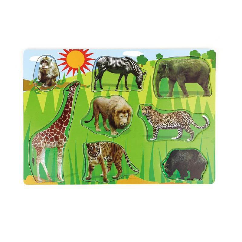 Дървен детски пъзел с 8 диви животни Acool Toy