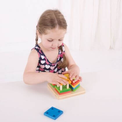Дървен пъзел с геометрични фигури за нанизване Bigjigs е предназначен за деца над 1 година. Играта с него е не само страхотен начин за забавление, но и възможност за запознаване с геометричните форми, както и начални познания за числата до 4 и тяхното броене. Дървен пъзел с геометрични фигури за нанизване Bigjigs е безопасен за здравето на детето, екологичен, здрав и оцветен в атрактивни цветове. Помага за развитието на координативните движения, сръчността и ловкостта. Посочената цена е за 1 брой. Разгледайте още продукти в категорията "Дървени пъзели" - ТУК!