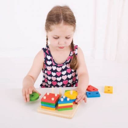 Bigjigs-Дървен пъзел за сортиране с геометрични форми