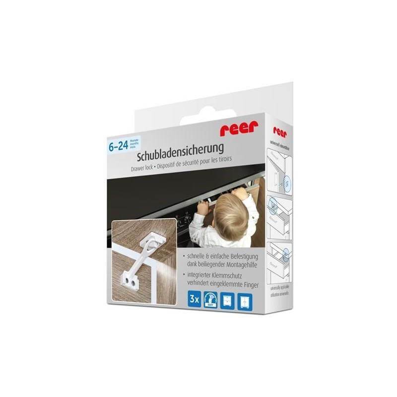 Заключалка за чекмеджета и шкафове Reer 71010. Бърз и лесен монтаж. Монтаж без измерване или маркировка само за няколко минути. Заключването е подходящо за шкафове и чекмеджета, като предотвратява притискане на пръстите. Разгледайте още продукти от категорията "Бебешки аксесоари" ТУК!