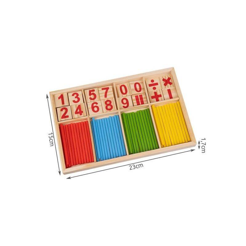 Математическа дървена игра по метода Монтесори ще развие уменията на детето ви да си служи с цифри и ще положи добри математически основи. Използвайки дървеното сметало и броейки дървените пръчки детето ви ще хареса смятането и ще спре да се страхува от математиката. Цветните пръчици ще покажат на най-мъничките колко интересни и въобще не трудни са различните математически операции. Комплектът математическа дървена игра по метода Монтесори е цветен, което го прави привлекателен и насърчава малчугана да играе с него. Играчката не само ще отведе децата в света на математиката, но и ще развие тяхната творческа страна, защото ако не се използват за смятане, с цветните пръчки могат да се създадат интересни фигури. С малко вдъхновение детето ви само ще открие начин, по който да се забавлява с дървената математическа игра. Посочената цена е за 1 брой. Разгледайте още продукти в категорията "Образователни играчки" - ТУК!