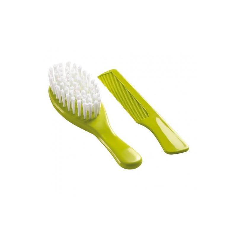 Бебешки комплект гребен и четка в зелено Thermobaby. Комплект от четка и удобен гребен Произведен във Франция от качествени и безвредни материали. Разгледайте още продукти от категорията "Бебешки аксесоари" ТУК!
