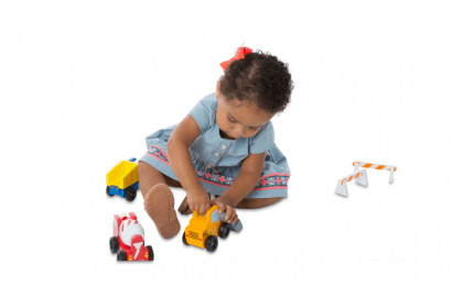 Залавяйте се с детски дървен комплект от превозни средства Строителна площадка Melissa & Doug! Той се състои от три строителни превозни средства, две пътни бариери и три фигурки на работници. Здравата дървена конструкция и движещите се части на всяко превозно средство означават, че те ще издържат на безкрайни часове забавна игра. Самосвалът може да накланя задната си част, циментовозът да върти миксера си, а тракторът да повдига челния си товарач. Дървените фигурки на работници са подходящи и за трите превозни средства в комплекта. Играта с детски дървен комплект от превозни средства Строителна площадка Melissa & Doug е полезна за фините моторни умения, координацията и ролевата игра. Изработката на частите е от дърво и са боядисани в нетоксични бои. Посочената цена е за 1 брой. Разгледайте още продукти в категорията "Играчки за бутане" - ТУК! Комплектът съдържа: самосвал (12,5 см), циментовоз (12,5 см), трактор (15 см), две бариери (по 11 см) и три работника.