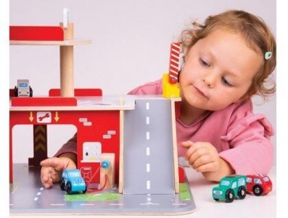 Има много възможности за игра с детски дървен паркинг с гараж Bigjigs, в който качва колите до горните места за паркиране. В комплекта има сервиз, автомивка и бензиностанция, които ще са нужни на всеки автомобил за да стигне от точка А до точка Б. На най-горния етаж има площадка за хеликоптер. Можете да допълните комплекта с още аксесоари, закупуващи се отделно. Игрите с детски дървен паркинг с гараж Bigjigs са полезни за развитието на добра координация, фина моторика и въображение, докато стимулира ролевата игра. Той е изработен от висококачествена дървесина, а боите, с които е боядисан са напълно безвредни. Количките не са включени в комплекта! Посочената цена е за 1 брой. Разгледайте още продукти в категорията "Дървени колички и камиони" - ТУК!