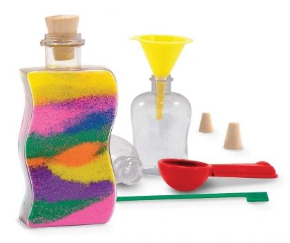 С детски творчески комплект с пясък Melissa & Doug детето Ви ще може да направи страхотни проекти, използвайки предметите в комплекта. Комплектът се състои от 3 пластмасови бутилки в различни форми с тапички, 8 торбички с многоцветен пясък, инструмент за дизайн, фуния и черпаче. Частите са лесни за използване, пясъкът се подрежда в бутилките, правейки различни форми. Заниманията с детски творчески комплект с пясък Melissa & Doug стимулират фината моторика, координацията, въображението и креативността. Посочената цена е за 1 брой. Разгледайте още продукти в категорията "Творчески комплекти" - ТУК! Комплектът съдържа: 3 пластмасови бутилки в различни форми с тапички, 8 торбички с многоцветен пясък, инструмент за дизайн, фуния и черпаче.
