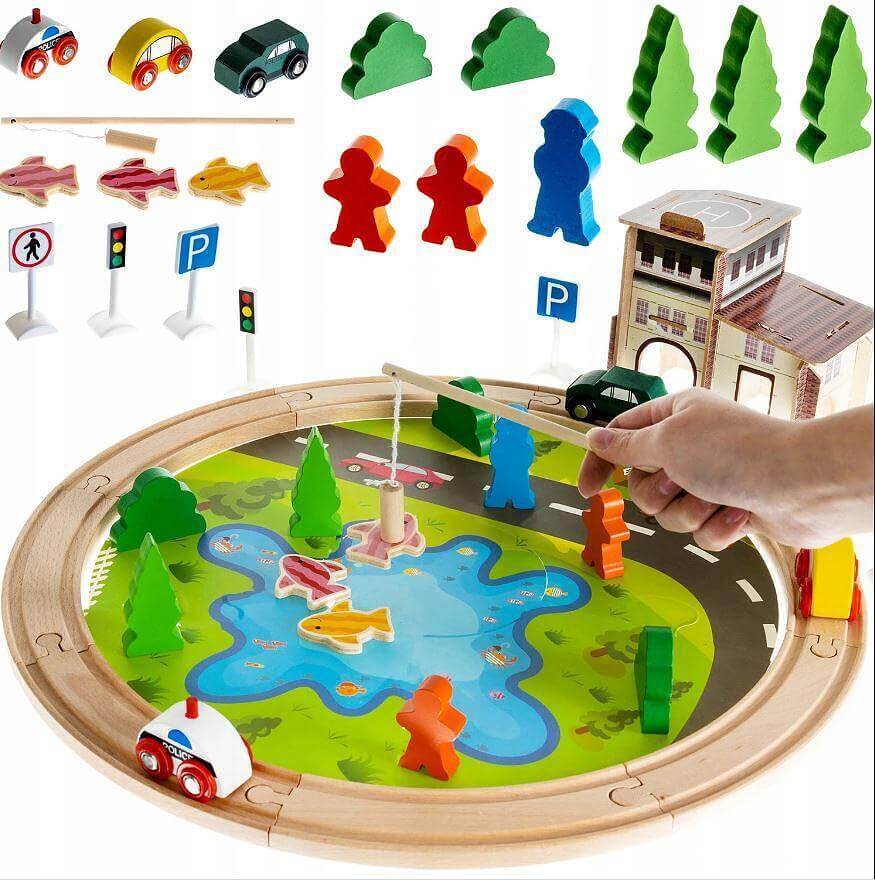 Дървена писта с риболов и множество аксесоари