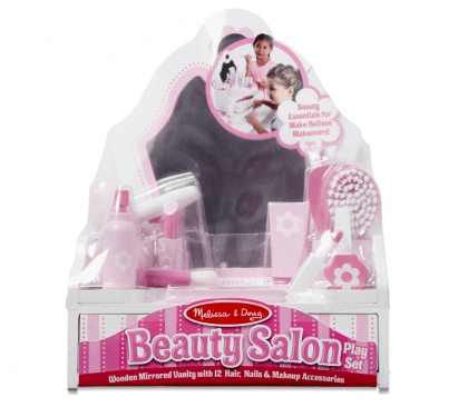 Дървена тоалетка с принадлежности за разкрасяване Melissa & Doug е оцветена в нежните цветове - бяло и розово. Тоалетката е направена от дърво и притежава всичко, което е необходимо за разкрасяване и оформяне на прическата и грима. Тя си има красиво огледало и чекмеджета за съхранениее. Заниманията с нея ще развият въображението, фината моторика, креативността и чувството за естетика. Също така, ако с дървена тоалетка с принадлежности за разкрасяване Melissa & Doug играе повече от едно дете и това ще развие и социалните и комуникативни умения на детето. Посочената цена е за 1 брой. Разгледайте още продукти в категорията "Детски принадлежности" - ТУК! Комплектът включва: сешоар лак за коса изправител за коса бутилка за лосион за въртене червило две бутилки за лак за нокти руж четка за грим сенки за очи апликатор гребен четка Картата за многократно ползване на спа услуги позволява на децата от три и повече години да получат пълно изживяване в салона, като персонализират перфекционизмите за себе си, за приятели, препарирани животни и кукли!