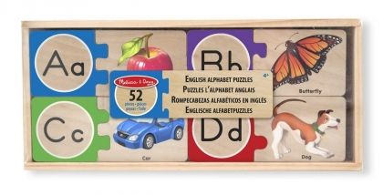 Дървен самокоригиращ се пъзел Английската азбука Melissa & Doug е вече на ваше разположение! Детето ще се запознае с английската азбука, забавлявайки се със самокоригиращия се пъзел на Melissa & Doug. Под самокоригиращ се пъзел се има предвид, че всеки от пъзелите се състои от 2 части, като всяка от тях пасва само на своята половина. Всяко пъзелче е с картинка на думичка, започваща с пасващата на пъзела буквичка. Изработката на дървен самокоригиращ се пъзел Английската азбука Melissa & Doug е от дърво и е боядисан с бои на водна основа, които са безвредни. Посочената цена е за 1 брой. Разгледайте още продукти в категорията "Дървени пъзели" - ТУК! Комплектът съдържа: 52 части.