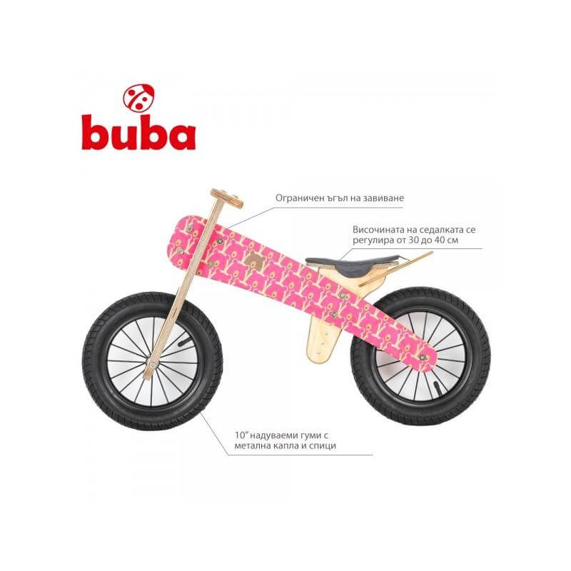 Детско колело за балансиране Buba Explorer – Розово ще помогне за развитието на баланса. То е здраво и много леко. Кормилото осигурява безопасност, тъй като не завива на повече от 45 градуса. Подходящо е за деца от 2 до 4 години, с допустимо тегло до 30 кг. Детско колело за балансиране Buba Explorer – Розово има седалка, която може да се регулира с до 40 см. Подходящо е за употреба навън и вътре. Можете да разгледате останалите продукти от категорията "Колела за баланс" ТУК!