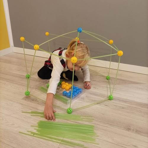 Сламки за сглобяване 100 бр. палатка Kruzzel. ДО 101 ЕЛЕМЕНТА! – комплектът включва 64 флуоресцентни сламки и 36 топчести конектора в 3 цвята (зелен, оранжев и син) и зелен капак/шатра. Позволява реализирането на почти безброй проекти. Целият комплект е опакован в кутия с пластмасова вложка, която има отделения, което ще осигури ред при съхранение и преместване на комплекта. 2 в 1 - комплект блокове може да се използва и като палатка. Благодарение на големия чаршаф можете да създадете тунел, палатка и различни конструкции, които да се покриват и да се играе вътре. КОМПЛЕКТЪТ СЕ ЗАБАВЛЯВА И УЧИ - кубчетата влияят върху развитието на вашето дете, развиват ръчните умения и стимулират въображението, като същевременно доставят много забавление на вашето дете. Докато играе, детето упражнява и концентрация и зрителна координация. Комплект блокове също е чудесна идея за подарък, пакетът включва кратка инструкция, показваща какви примерни конструкции могат да бъдат направени с елементите на комплекта. ФЛУОРЕСЦЕНТНИ СЛАМКИ - сламките са изработени във флуоресцентно зелен цвят, така че можете да създадете интересни структури, които ще очароват детето в тъмното. Разгледайте още продукти в категорията “Сглобяеми играчки” – ТУК!