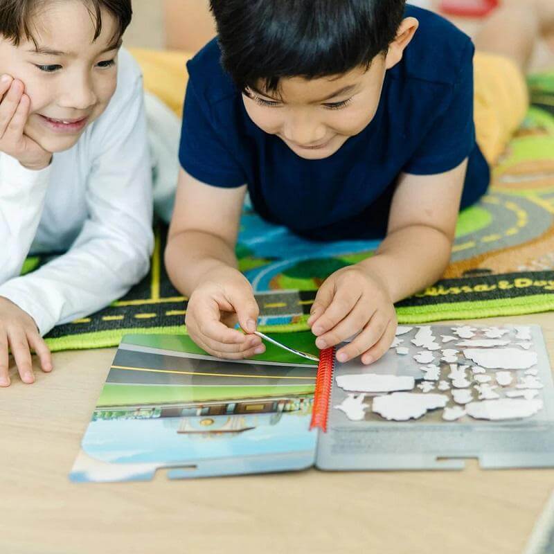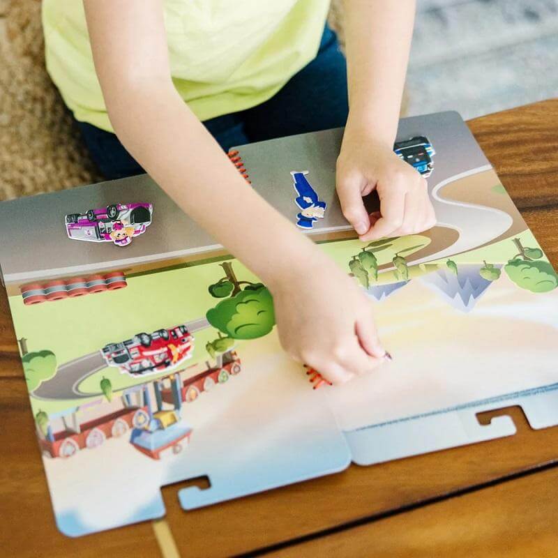 Книжка със стикери Пес Патрул Melissa & Doug. Залепващите Puffy Stickers позволяват на децата да създават PAW Patrol™ приключения отново и отново! Разкажете безброй истории с тези забавни многомерни стикери и сцени. Просто поставете и наслоете пухкавите стикери Big Truck Pups върху лъскавите разгъващи се сцени. Лесно е да повдигате, превключвате и пренареждате всичко това, за да изобразите каквато и да е изпълнена с кученца приказка, която едно дете може да си представи! Вградената колекция от стикери – общо 34 стикера за многократна употреба – предлага много възможности за децата да изразят своята креативност, като същевременно подобряват фината моторика и комуникативните умения. Форматът със спирала е чудесен и за пътуване. PAW Patrol™ е винаги готов да помогне, вдъхновявайки децата в предучилищна възраст със смесица от работа в екип, приключения и хумор, докато развиват социални, емоционални и умения за развитие чрез игра. Този продукт е сертифициран от Forest Stewardship Council. FSC сертификацията гарантира, че продуктите идват от отговорно управлявани гори, които осигуряват екологични, социални и икономически ползи и че горите са защитени за бъдещите поколения. Разгледайте още продукти в категорията “Забавни игри” – ТУК!