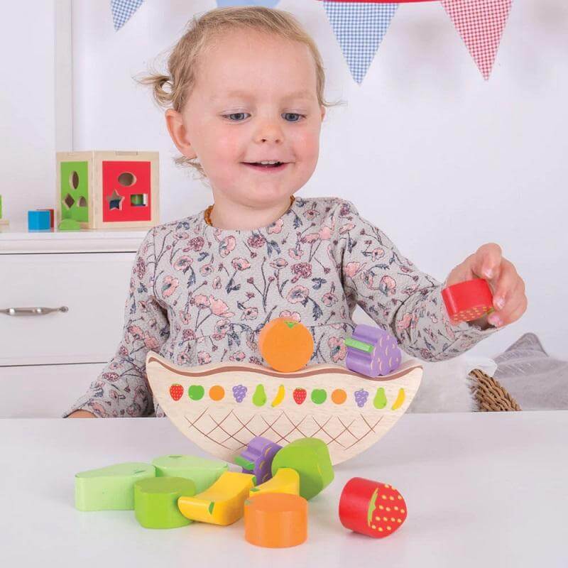 Характеристики на продукта Дървена игра за баланс Плодове Bigjigs: