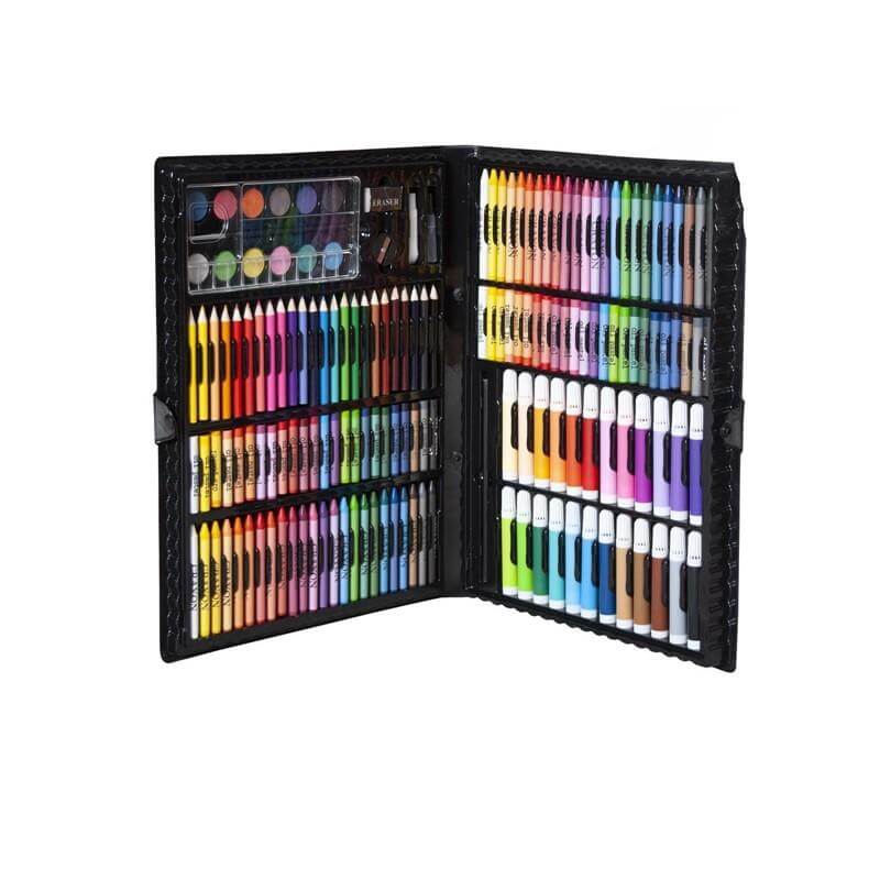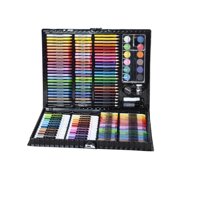 Започнете своето артистично приключение с този творчески комплект за рисуване - 168 елемента. Продуктът е подходящ както за начинаещи художници, така и за по-опитните в областта. Творчески комплект за рисуване - 168 елемента е функционален и включва общо 168 елемента, с които да творите. Всички те са прилежно съхранени в удобно черно куфарче. С него лесно ще можете да пренесете комплекта от едно място на друго, без да се притеснявате, че може да загубите някоя част. Дайте воля на въображението си и превърнете творческите си идеи в реалност. Аксесоарите са с широка и атрактивна цветова гама, което прави възможно създаването на разнообразни, цветни творби. Сигурни сме, че всеки любител на изкуството ще се зарадва да притежава това впечатляващо куфарче, пълно с цветове и вдъхновение. Посочената цена е за 1 брой. Разгледайте още продукти в категорията "Творчески комплекти" - ТУК! Комплектът съдържа: 168 части (куфарче и 168 аксесоара за рисуване): - 24 молива; - 48 пастели за свещи; - 48 маслени пастела; - 24 маркера; - острилка; - гума; - лепило; - коректор; - 12 акварелни бои; - молив; - четка за боя; - 5 листа за рисуване.