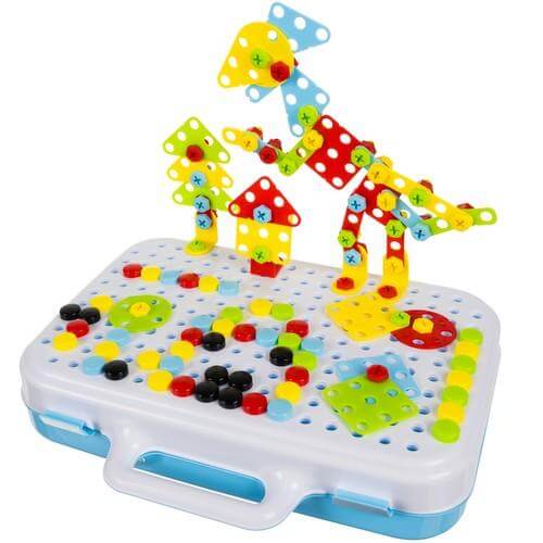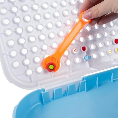 - възраст: 3+ - захранване за отвертка: 2x AA (не са включени) - брой елементи в комплекта: 106 - размери (дължина/широчина/височина): 6/30/23.5см - тегло на комплекта: 0,7 кг - тегло с опаковката: 0,77 кг - ВКЛЮЧЕНО: отвертка, цветни подложки х 64, цветни винтове x 40, куфар - мозайка с дупкиПроизводител