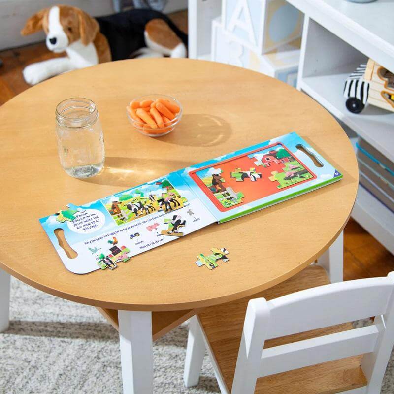 - подходяща възраст: 5+ - материал: картон, магнит - размер на продукт: 21.59 x 18.4 x 0,7 см - размер на опаковка: 3.1 x 15.2 x 25.4 см - комплектът съдържа: 2 магнитни пъзела с тематика за фермата от 15 части в компактен, сгъваем форматПроизводител