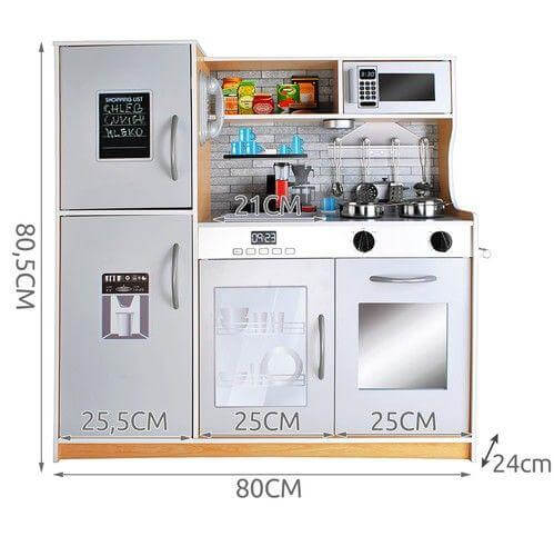 - възраст: 3+ - материал: дърво - цвят: светло кафяв + сив - захранване на лампата: 3 x AAA батерия (не са включени) - размери: 80х80,5х24см - тегло с опаковката: 13,65 кг ВКЛЮЧЕНО: печка, лампа, гърне, тиган, капак, черпак, лъжица за спагети, решетъчна лъжица, лъжица за пастаПроизводител
