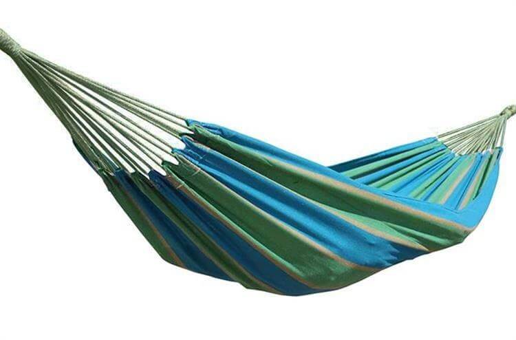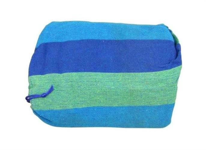 Голям хамак за градина за двама. Хамакът е изработен от памук с малка добавка на полиестер, което го прави приятен на допир и издръжлив. Освен това осигурява подходяща вентилация, което осигурява страхотен комфорт при използване в горещите дни. Материята може да се пере в пералня без проблеми. Възможността за бързо разглобяване прави хамака лесен за опаковане и носене със себе си на път. Перфектен за излети на открито, къмпинг или просто в градината. Дебели въжета и издръжливи шнурове позволяват безопасно използване на хамака с издръжливост до 150 кг. Хамакът може да бъде окачен почти навсякъде, просто закрепете двата края с въжета за стабилна повърхност, напр. дървета, стълбове и др. Разгледайте още продукти в категорията "Играчки за навън" - ТУК!