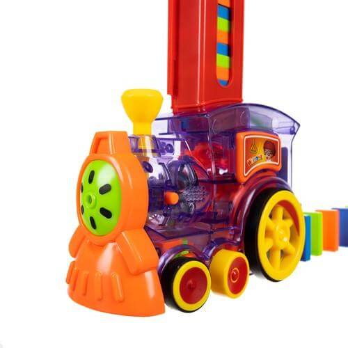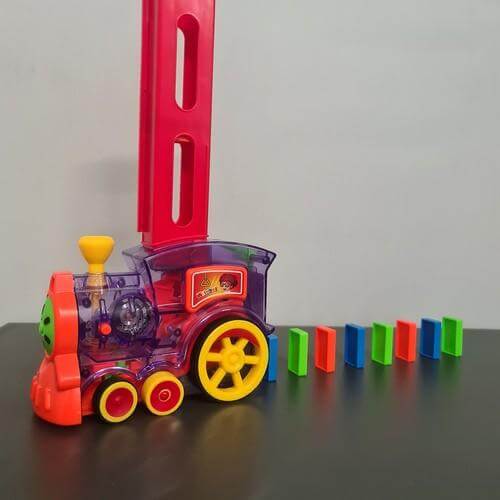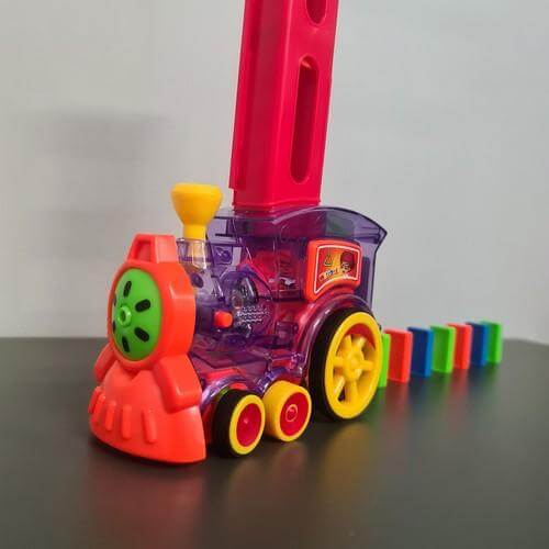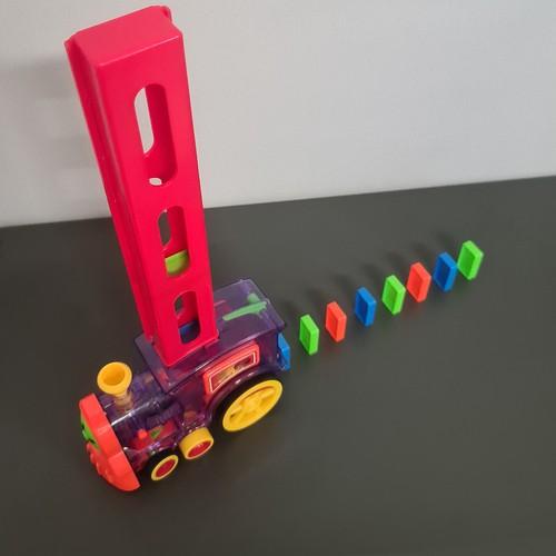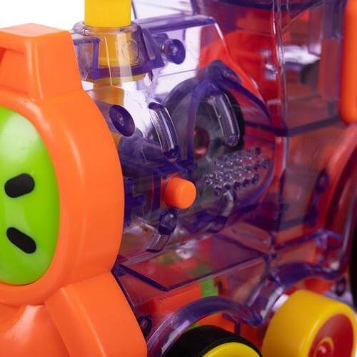 Детски локомотив с домино Kruzzel 22450. БЪРЗ МОНТАЖ - отсега нататък подреждането на дълги домино ще отнема само десетина секунди! Това е страхотно забавление за тези, които обичат да гледат как блоковете падат! Допълнително комплектът включва кактус за обръщане на 2 маршрута едновременно. ИНТЕРАКТИВНО - влакчето домино е гарантирано забавление както за момичета, така и за момчета. Локомотивът е прозрачен с цветни елементи и изпипани детайли. Влакът наистина върви, свети и звъни. TURN - децата ще останат във възторг от това забавно зрелище. Като завъртите комина, можете да промените посоката на влака, като по този начин създавате различни форми на домино с блоковете. FUN AND TEACH - играчката чудесно развива координацията око-ръка, фината моторика и насърчава креативното мислене и креативността. Наситените цветове и интересният механизъм, който се вижда в прозрачната играчка, привличат вниманието на детето. Забавлението от реденето на домино със сигурност няма да омръзне бързо. Разгледайте още продукти в категорията "Забавни игри" - ТУК!