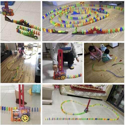 - цвят: многоцветен - материал: пластмаса - размери: 34,5 х 15,5 х 7,5см - тегло: 418гр - включено тегло: 518гр - ВКЛЮЧЕНО: цветни блокчета домино 60 бр, локомотив, кактус за събаряне на маршрути на 2 блока едновременноПроизводител