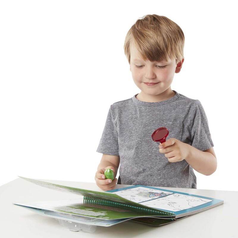 Книжка за оцветяване на водна основа Праисторически животни Melissa & Doug ще зарадва Вашето дете и ще му подари часове наред приятни занимания. Книжката е със страници на водна основа, които се оцветяват при досег с вода, но когато изсъхнат губят цветовете си. Картините, с които ще се срещнете са арктически лабиринт, сафари, океан, джунгла, ферма, коралов риф, лабиринт за домашни любимци и гора. Така те могат да се оцветяват многократно, без да има петна наоколо от флумастери или маркери. Също така, в комплекта ще намерите и лупичка, която ще Ви покаже скрити неща зад самите рисунки. Книжка за оцветяване на водна основа Праисторически животни Melissa & Doug ще развие въображението, финта моторика и наблюдателността на детето. Посочената цена е за 1 брой. Разгледайте още продукти в категорията "Творчески комплекти" - ТУК! Комплектът включва: Книжка за оцветяване, химикалка на водна основа и лупичка.