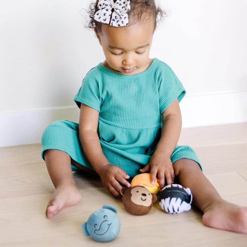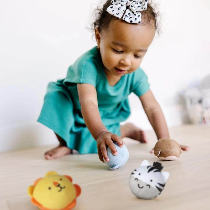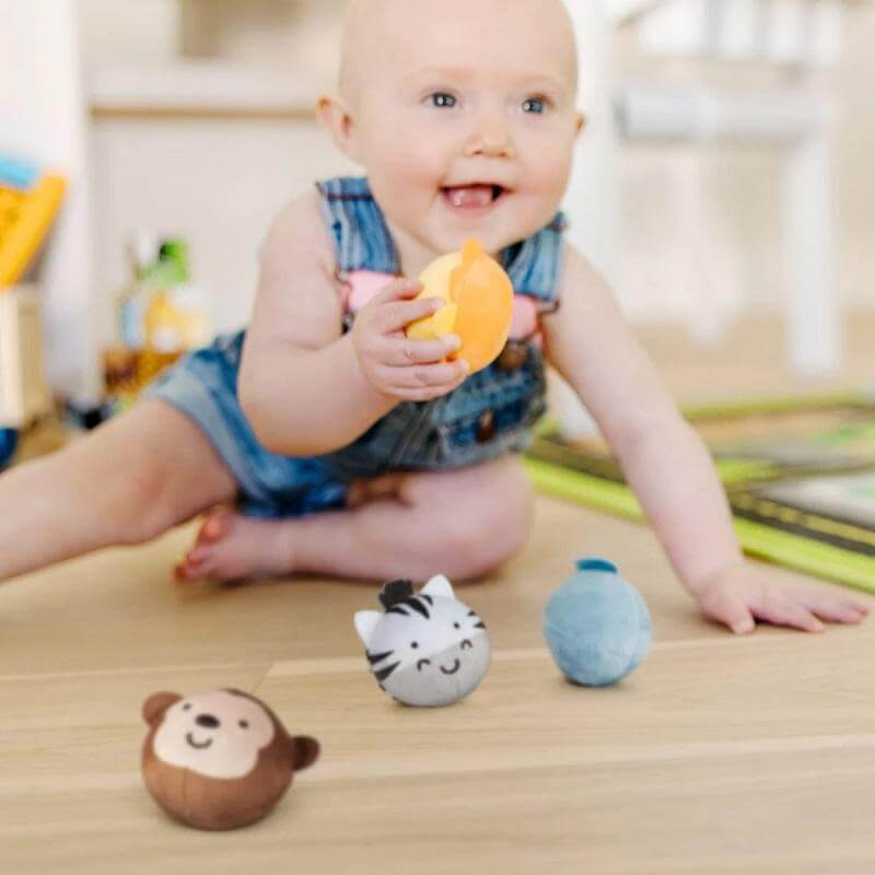 Комплект бебешки играчки кръгли животни - Сафари Melissa & Doug. Време за игра - развивайте умения за търкаляне с Safari Friends Rollables — очарователно кръгли герои, които са достатъчно твърди, за да се търкалят, но достатъчно меки, за да се стискат! Въображаеми сафари приключения чрез кинетична игра с четири Rollables с диви животни, които се съхраняват удобно в опаковката: палава маймуна, раирана зебра, слон и лъв със звънче. Съвместим с други комплекти за игра Rollables. Увлекателен начин за насърчаване на развитието на важни сетивни и фини двигателни умения. Очарователни, разнообразни герои и разнообразие от забавни форми и текстури насърчават изследователската игра за изграждане на умения. Разгледайте още продукти в категорията “Бебешки играчки” – ТУК!