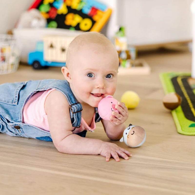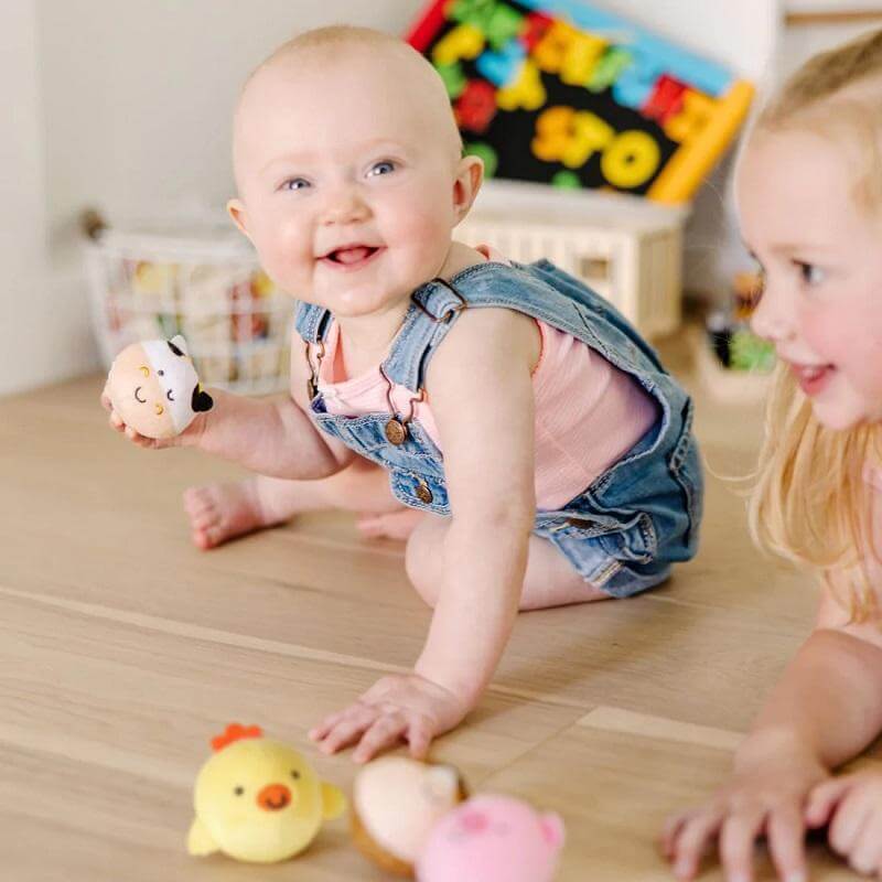 Бебешки играчки кръгли животни - Ферма Melissa & Doug. Време за игра - развивайте умения за търкаляне с Safari Friends Rollables — очарователно кръгли герои, които са достатъчно твърди, за да се търкалят, но достатъчно меки, за да се стискат! Въображаеми селски приключения чрез кинетична игра с четири Rollables с фермерски животни, които се съхраняват удобно в опаковката: сладка крава със звънче, весело пиле, нахално прасе и дружелюбен кон. Съвместим с други комплекти за игра Rollables. Увлекателен начин за насърчаване на развитието на важни сетивни и двигателни умения. Разнообразни герои и разнообразие от забавни форми и текстури насърчават изследователската игра за изграждане на умения. Разгледайте още продукти в категорията “Бебешки играчки” – ТУК!