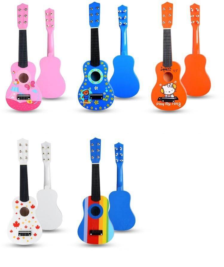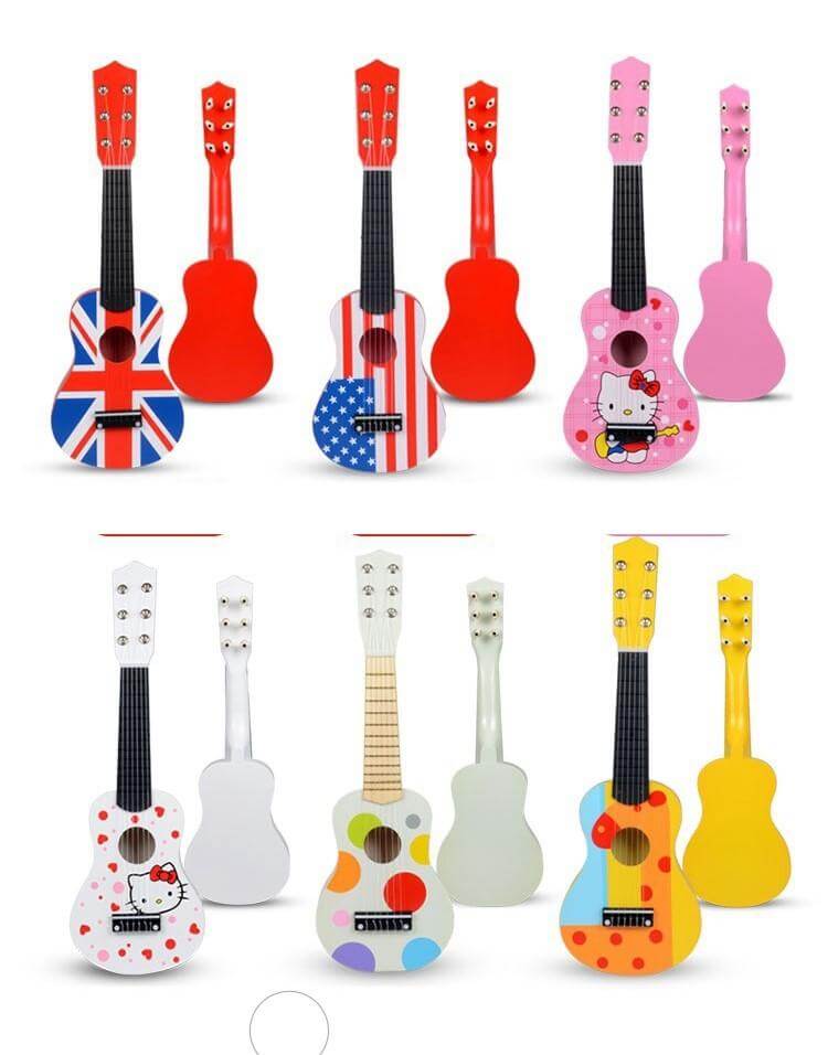 Дървена детска китара Acool Toy. Цветна дървена китара с шест струни, лека и удобна за държане. Децата развиват усет за музика и ритъм, координацията между очите и пръстите, забавляват се и се учат на музикална култура. Разгледайте още от категорията "Музикални играчки" ТУК!