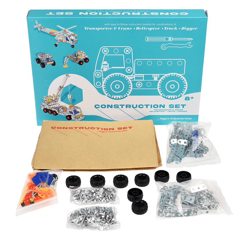 Метален конструктор - Превозни средства 4 в 1 Rex London. Изградете вашите превозни средства и се пригответе да летите, копаете, шофирате и още! Този строителен комплект съдържа всичко необходимо, за да направите четири различни превозни средства, включително транспортьор и кран, хеликоптер, камион и багер. Разгледайте още продукти в категорията “Метални конструктори” – ТУК!