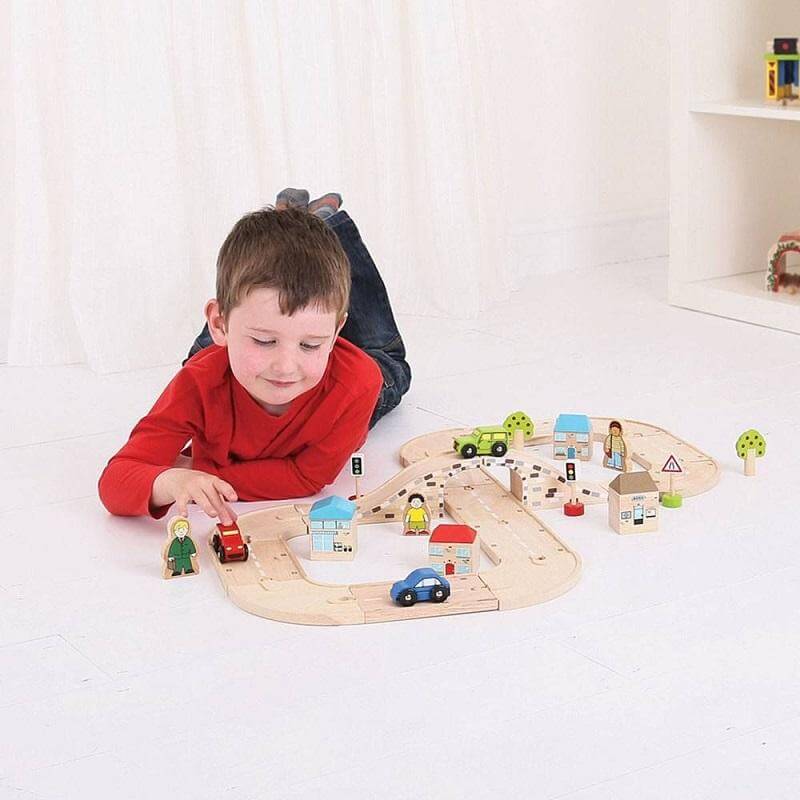 Детска дървена писта с колички Bigjigs е чудесен подарък за всяко дете. Сглобете си малък град с улици, сгради, пътни знаци и дървета. Пътят е във формата на осморка, а по него се движат дървени колички. В комплекта има и фигурки на човечета. Сглобяването на комплекта е забавен и развива фината моторика, а играта с него е изключително занимателна. Частите на детска дървена писта с колички Bigjigs са многоцветни и са боядисани с бои на водна основа, които са напълно безвредни за дечицата. Посочената цена е за 1 брой. Разгледайте още продукти в категорията "Дървени колички и камиони" - ТУК! Комплектът съдържа: части за улица, 4 сгради, 3 колички, 3 човечета, 4 пътни знака и 2 дръвчета.