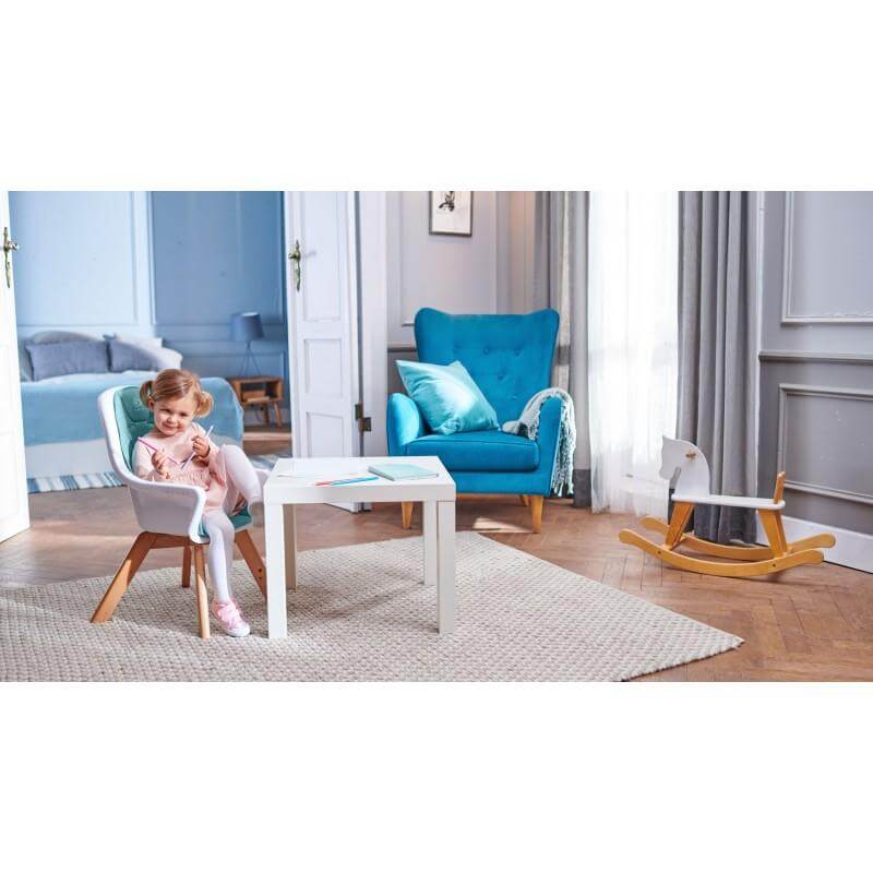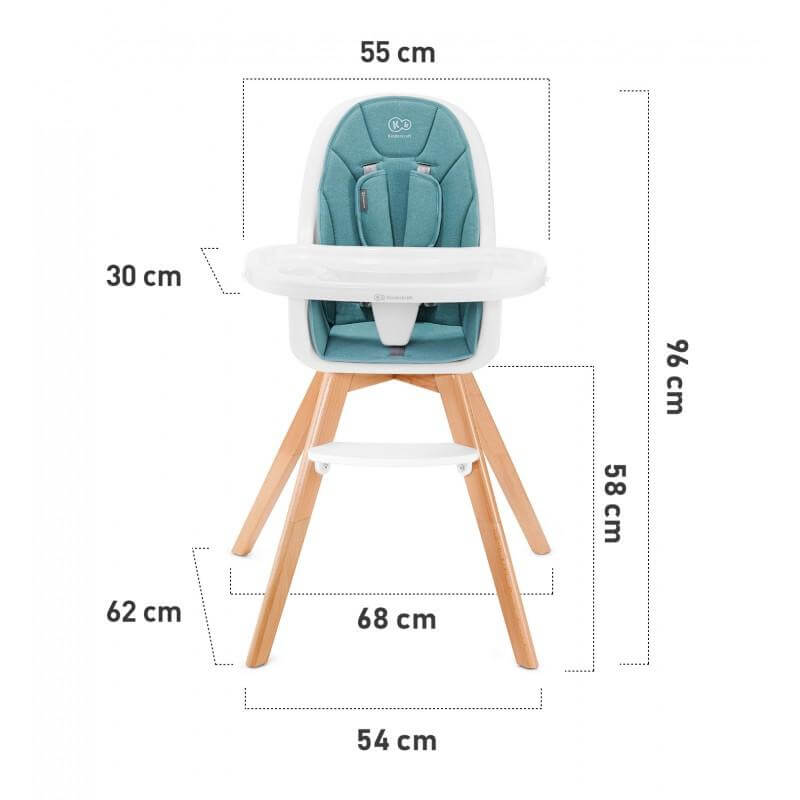 - удобство и издръжливост - водоустойчив материал за облицовка / Водоустойчив полиестер - PP пластмаса - Спомага за доброто почистване на стола - букова дървесина - Дървени крачета за издръжливост - за деца на възраст: От 6 месеца до 5 години - размери табла: 55 x 30 cm - размери седалка (С тапицерия): 24 x 24 cm - разстояние между предни крачета: 54 cm - разстояние между задните крачета: 68 cm - височина: 96 cm - разстояние от предния и задния крак: 62 cm - тегло: 5,7 kg - гаранция: 2 years - отговаря на Стандарт: EN 14988