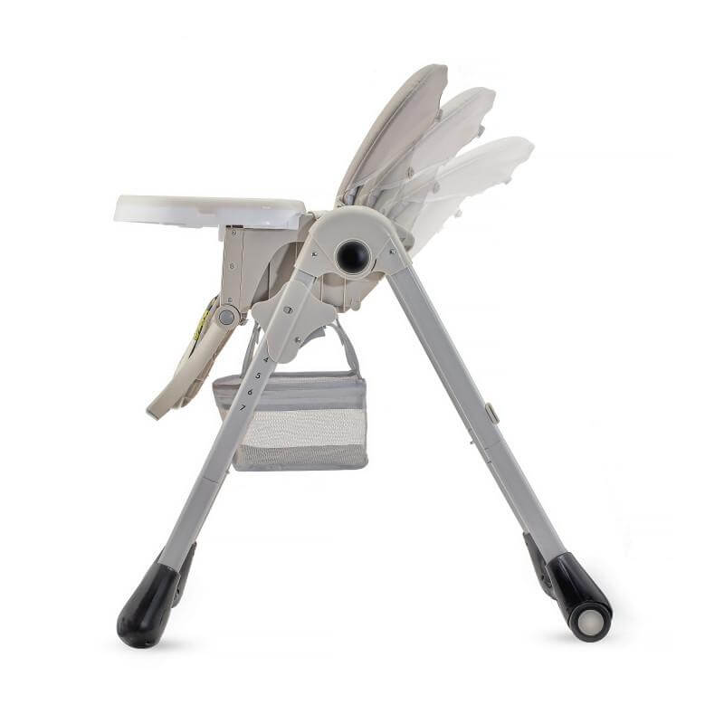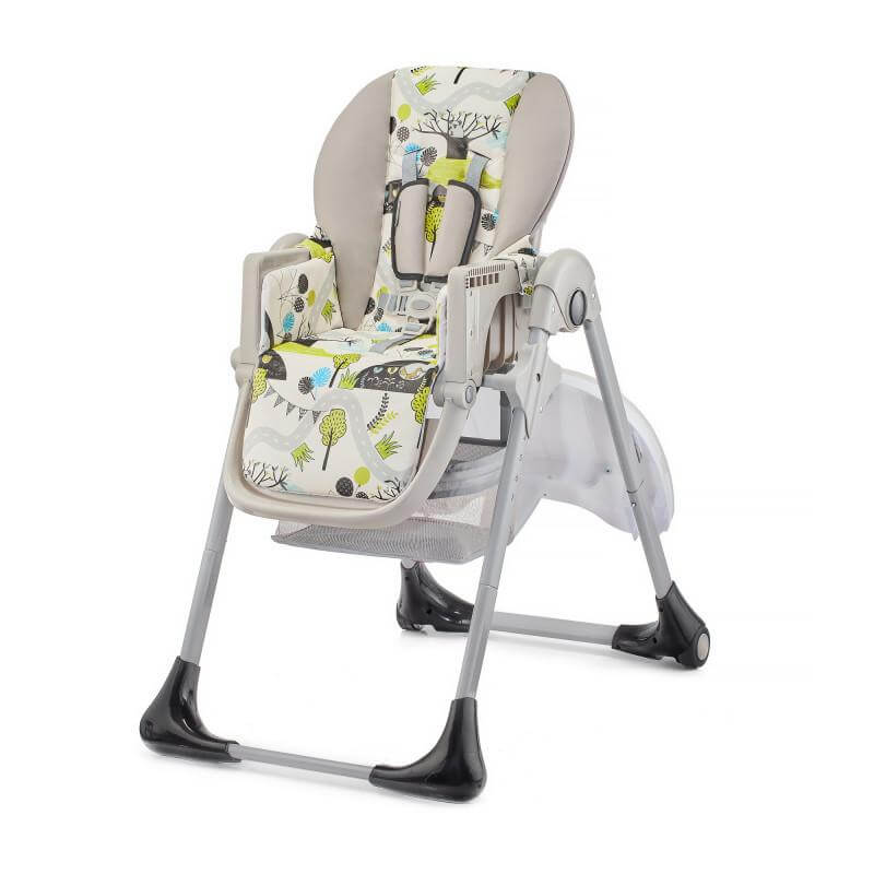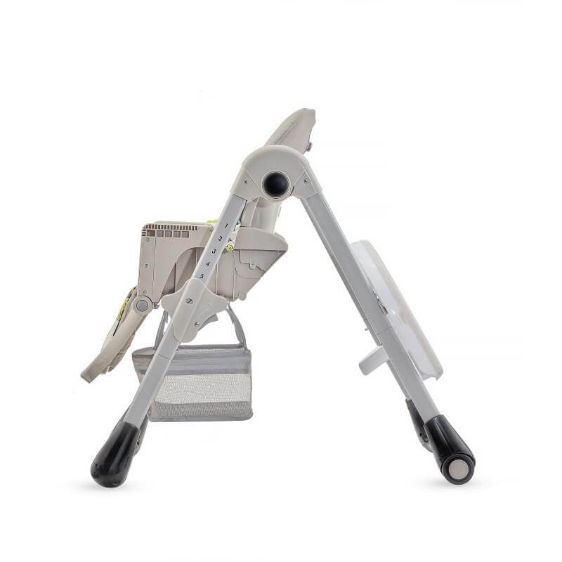 - рамка: здрава алуминиева - калъф: мека, устойчива и лесна за почистване изкуствена кожа - колела: гумени, които не нараняват пода - размери 84,5 x 55,5 x 105 cm - тегло: 8,2 kg - отговаря на стандарт EN14988:2017 за столчетата за хранене.Производител
