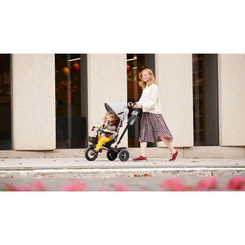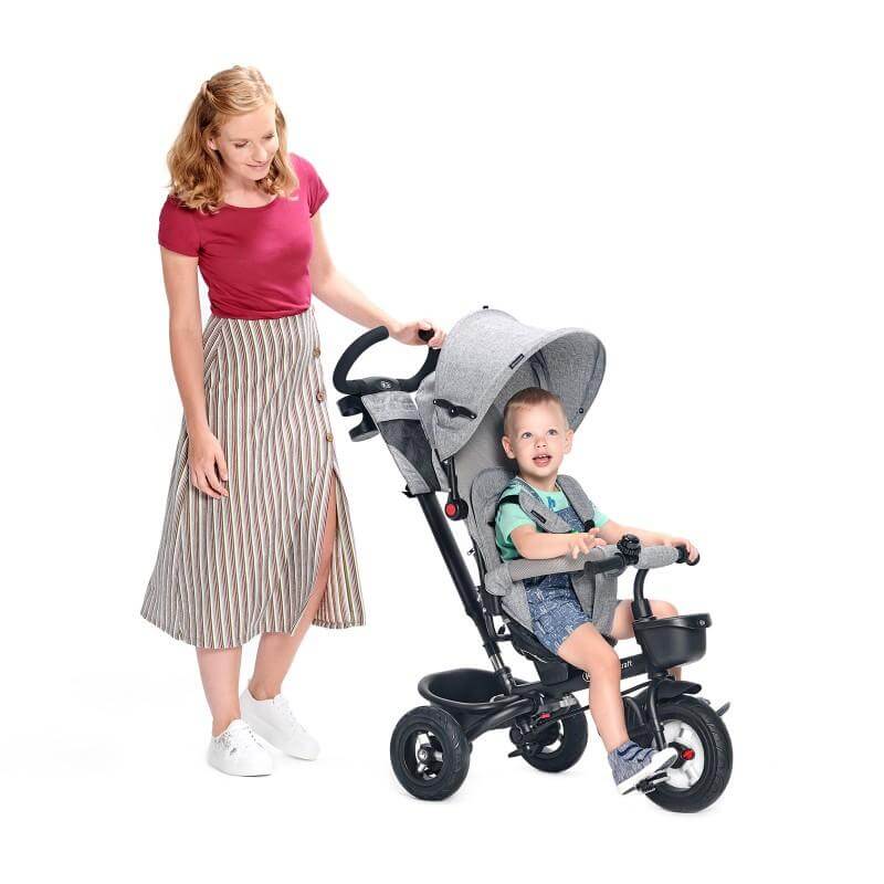 Триколка за деца в сив цвят KinderKraft AVEO. Триколка с тройна функция: детето може да държи краката си върху поставка за крака, педалите се въртят, но не упражняват двигателна сила на колелтото, детето пътува самостоятелно, като върти педалите. Детето може свободно да върти педала на свободното клело, докато родителят контролира и коригира маневрите на триколката. Триточкови предпазни колани с мек пълнеж и мека защитна лента осигуряват безопасност и комфорт на детето, а сенникът предпазва от слънце и дъжд. Триколката е оборудвана с две независими спирачки. Въртяща се седалка - може да се монтира и като седалка, обърната назад или с лице напред. Разполагате и с чанта за дребни предмети, 2 кошници - голяма зад седалката, а малката на кормилото, държач за чаша, звънец. Това е удобен вариант за вашето дете, когато все още не достига педалите или иска да си вземе почивка. Тиколката може да бъде сгъната до компактен размер само за няколко секунди. Дори се побира в малък багажник, така че пътуванията до далечни места ще бъдат пълни с приключения и забавления! Можете да разгледате останалите продукти от категорията “Детски триколки” ТУК!