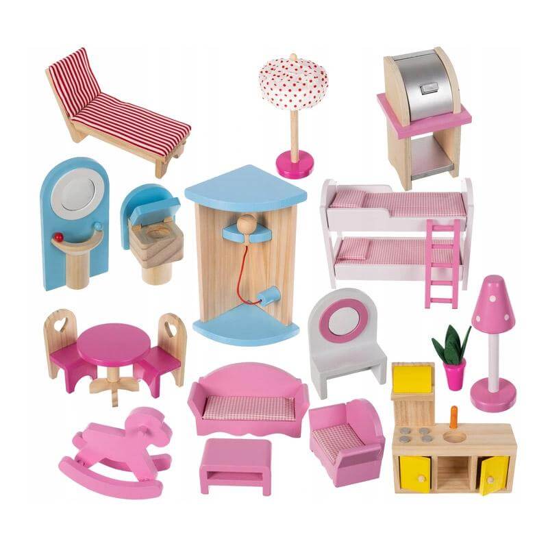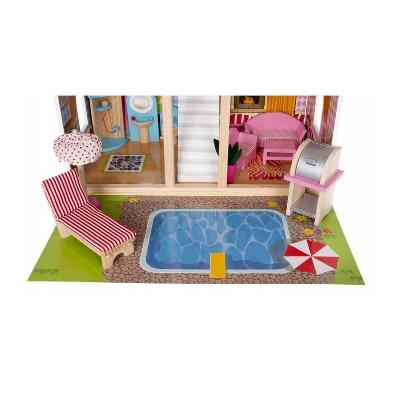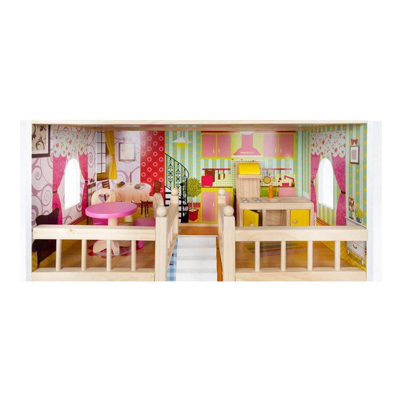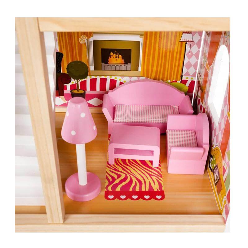 Голяма дървена къщичка с аксесоари ще стимулира въображението и креативността. Момиченцата ще се зарадват на къщичката, тъй като могат да играят на различни игри и по разнообразни начини. Тя е предназначена за семейство от 4 кукли и е разделена на три нива. Те са свързани с красиво бяло стълбище. Голяма дървена къщичка с аксесоари е изработена от дърво и това я прави много здрава. Допълнителното очарование се допълва и от LED лентата, която работи на батерии, но не са включени в комплекта. С нея можете да осветите конструкцията и така детето да си играе дори да е тъмно или да я преместите, където пожелаете. Разгледайте и останалите продукти от категорията "Къщи за кукли и принадлежности" ТУК!