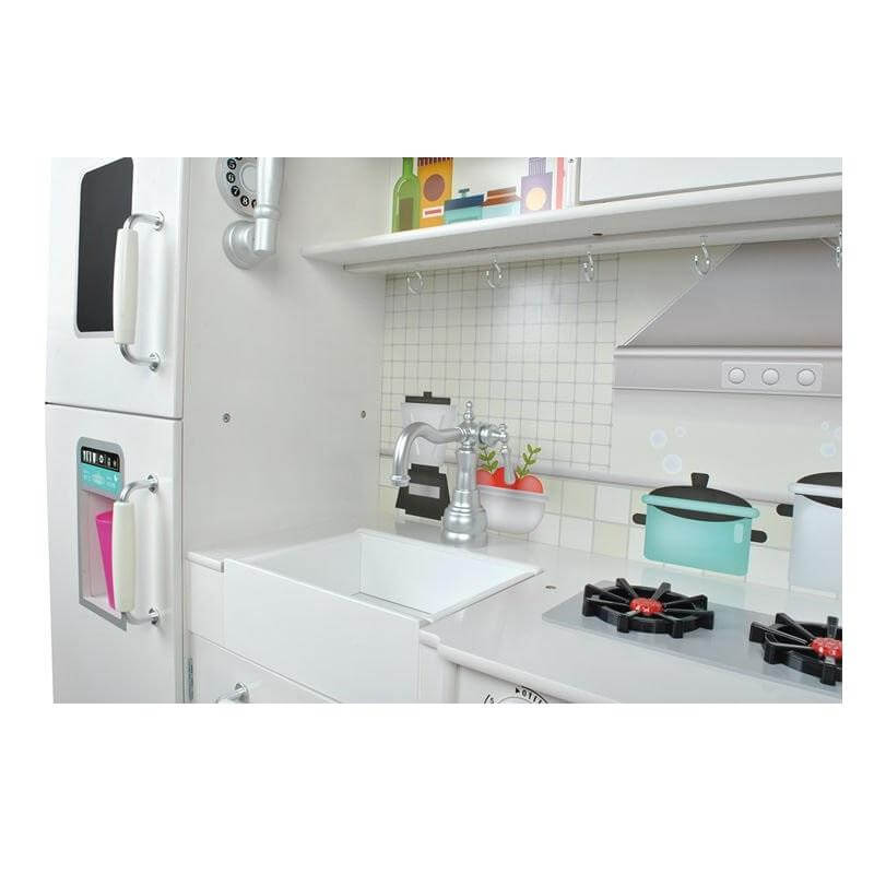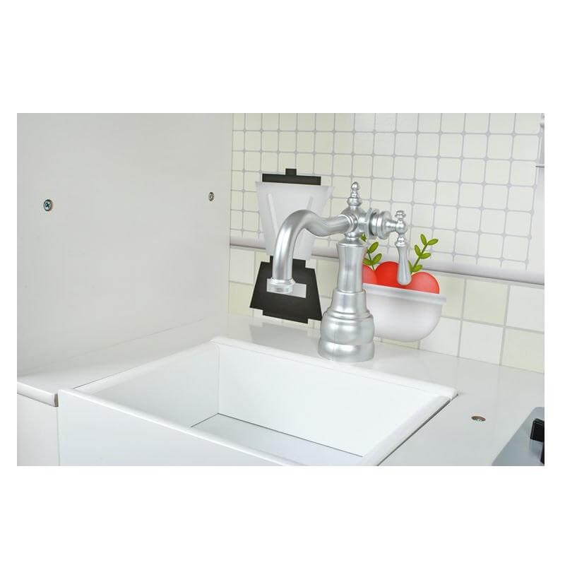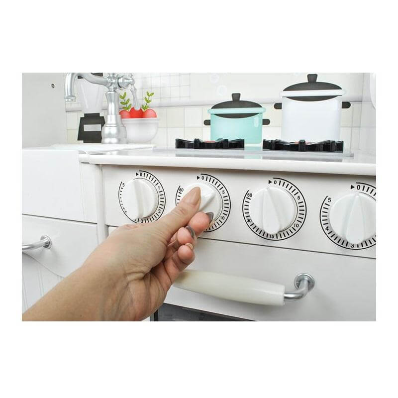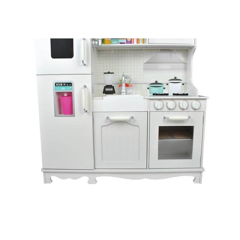 Дървена детска кухня в класически вид и цвят - XXL ще спечели вниманието на всички деца. Продуктът е изработен от висококачествено дърво, което значително влияе върху продължителността на неговото използване и безопасността и здравето на най-малките. Това е вечно предложение, което ще зарадва всяко малко дете. Кухнята е в класически вид и цвят, а това винаги е високо ценено. Изключително внимателната изработка с естетичен завършек и внимание към най-малките детайли добавя стойност и радва окото. Кухнята може също така успешно да изпълнява декоративна функция и да бъде украшение на детска стая. Играта с кухнята осигурява не само забавление, но и развива въображението и стимулира творческото мислене; преподава групово сътрудничество и подобрява социалните и интеграционни умения; увеличава ръчните и актьорски умения и може да се превърне във вдъхновение и да допринесе за успеха на бъдещия готвач. Комплектът включва и лампа, която може да се постави под шкафа, в шкафа или във фурната - изборът е ваш. Осветлението ще накара детето да се чувства като в истинска кухня. Лампата ще позволи на мъничето да приготви вечеря за своите кукли и мечета, а защо не и за своите родители, дори когато в стаята е тъмно. Освен това горелките във фурната са осветени и издават звук за готвене и те щракат при превключване на копчетата. Вашето дете ще бъде във възторг - кухнята ще му осигури часове забавление. Комплектът Дървена детска кухня в класически вид и цвят - XXL включва: 12 елемента (кухня, телефон със слушалка, лампа, престилка, готварска шапка, защитна ръкавица, 3 лъжици, тенджера, тиган и капак) Посочената цена е за 1 брой. Разгледайте още продукти в категорията "Детски дървени кухни и аксесоари" - ТУК!