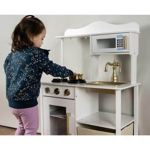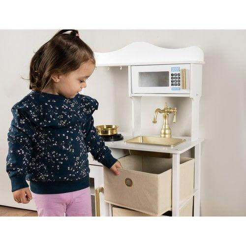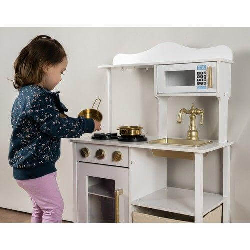 Модерна дървена кухня за игра с аксесоари бял и златист цвят Kruzzel