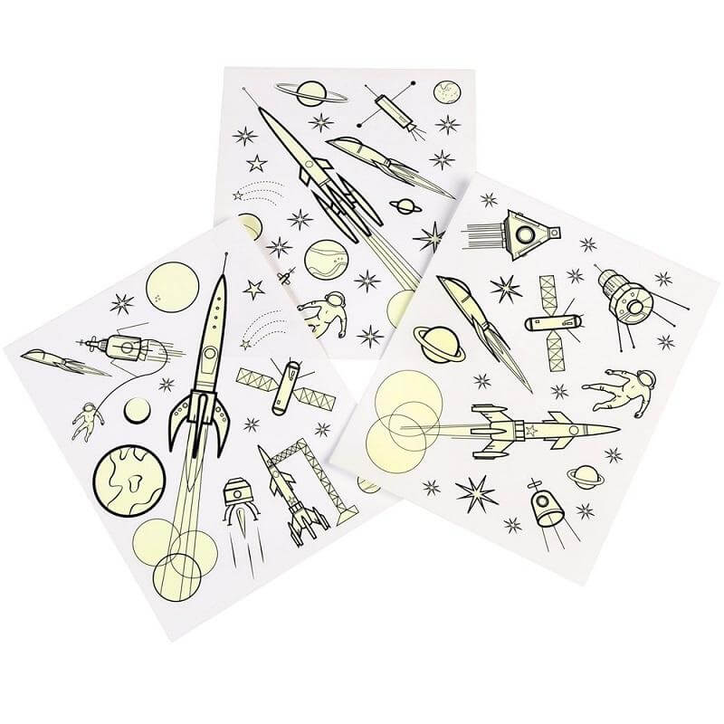Светещи в тъмното стикери - Космическа ера Rex London ще подарят часове наред приятни занимания. Те включват в себе си различни космически елементи. Светещи в тъмното стикери - Космическа ера Rex London могат да се залепят навсякъде. Поставете ги на мебелите, леглото или където поискате. Загасете лампите и вижте каква магия обгръща детската стая. Можете да разгледате останалите продукти от категорията "Творчески комплекти" ТУК!