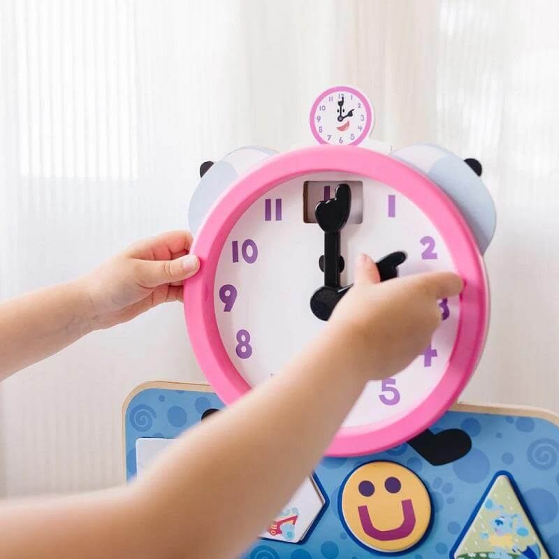 Дървен магнитен часовник Tickety Tock Melissa & Doug. Tickety Tock от Blue's Clues & You! представлява прекрасен дървен часовник, който е идеална помощ за децата да научат цифрите и времето. Този учебен инструмент предоставя забавен и интерактивен начин да се научат основни понятия за времето, да съпоставят форми и да идентифицират различни активности, усещания и сезони. С помощта на дървения часовник Tickety Tock, децата на три и повече години могат да се забавляват, докато учат. За да играят, просто плъзнете карта с часовник в горната част на дървения часовник и съпоставете щракащите стрелки на часовника на Tickety с правилния час. Това ги учи да разпознават и интерпретират времето, докато се забавляват с обичаните герои от Blue's Clues & You!. Играта с Tickety Tock не просто предлага обучение по отношение на времето, но и подпомага развитието на различни умения. Включените 25 оформени дървени магнита позволяват на децата да съпоставят времето, активностите, усещанията и сезоните с фигурите върху дървената основа. Това стимулира техния ум и умения за разпознаване на форми, съответствие и идентификация на различни елементи. Забавното и образователно изживяване продължава с възможността да попълните празна карта с часовник с чувствителен магнит, персонализирайки играта за децата. Това насърчава тяхната креативност и индивидуално изразяване, като дава възможност да създават собствени сцени и истории. Часовникът Tickety Tock е с дървена конструкция, което го прави издръжлив и подходящ за децата. Освен това, дървеният часовник има вградена стойка за съхранение на магнитите, което ги прави лесни за съхранение и предотвратява загубата на частите след играта. С Blue's Clues & You! децата не само ще се забавляват, но и ще развиват цялостно своите умения. Серията насърчава готовността за детска градина, вдъхвайки увереност, овластяване и доброта у децата в предучилищна възраст. Те учат да се справят с проблеми, да развиват социални умения и умения за развитие чрез забавни игри без екран. Този подарък ще бъде прекрасна добавка към образователните и забавни дейности на децата и ще ги подготви за бъдещи предизвикателства и учебни постижения. Разгледайте още продукти в категорията “” – ТУК! Характеристики на Дървен магнитен часовник Tickety Tock Melissa & Doug: - подходяща възраст: 3+ - размери на опаковката: 11.43 x 29.9 x 30.7 см - материал: дърво - комплектът съдържа: 5 карти с двустранен часовник, 25 оформени дървени магнита и дървен часовник с щракащи стрелки и вградена стойка за съхранение