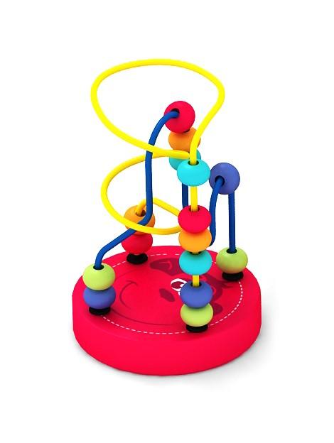 Дървен лабиринт с мъниста - маймунка Acool Toy. Играчката представлява дървена основа с формата на кръг. В нея са поставени две метални "пътечки", на които са нанизани дървени цветни мъниста. Заниманията с тази игра помагат за развиването на фината моторика, координацията между очите и ръцете, както и логическото мислене и запознаването с различни цветове и форми. Разгледайте още от категорията "Дървени низанки" ТУК!