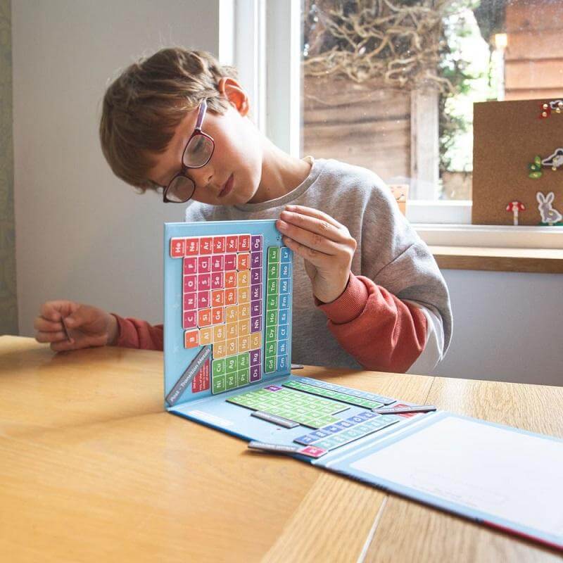 Образователна магнитна книга - Периодичната таблица Bigjigs ще помогне на детето с химията. Играта ще им подари часове наред приятни занимания. Образователна магнитна книга - Периодичната таблица Bigjigs има информация за различните химични елементи. Към това има и 2 магнитни листа за различните елементи, с които да запознаете детето с химията. Играта ще развие фината моторика, логическото мислене, сръчността и любознателността. Те са подходящи и за училище, където ще помогнат на децата да разберат по-добре предмета. Можете да разгледате останалите продукти от категорията "Магнитни игри" ТУК!