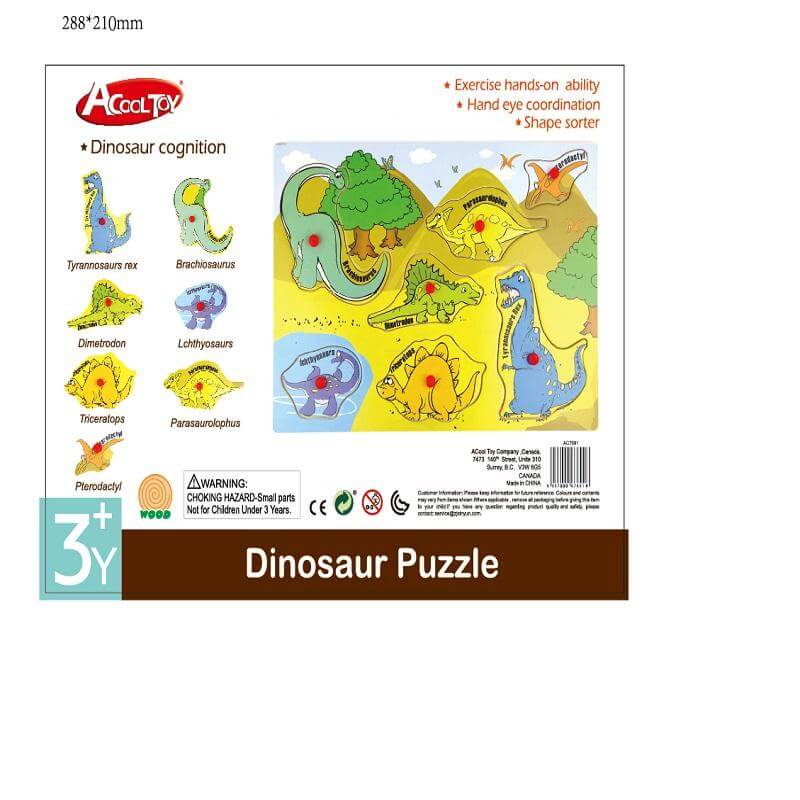 Детски дървен пъзел с диви животни и динозаври Acool Toy