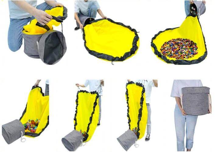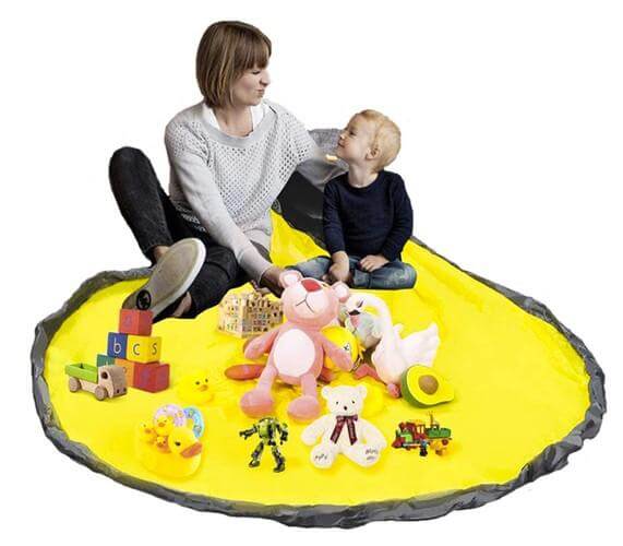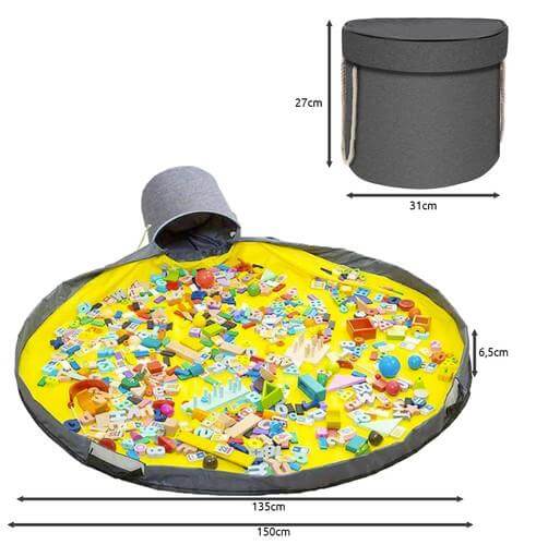 Кош за бебешки играчки с постелка. Практична и удобна постелка за прибиране на бебешки играчки с две функции. От една страна, кошът е блестящо решение за съхранение на безбройните играчки на детето, а от друга - от него се разгръща комфортна постелка за игра и забавление, която е с диаметър 135 см и се свързва с коша с дълга велкро лента. Играчките се изсипват и събират изключително лесно. Кошът е снабден с дръжки, благодарение чрез които можете лесно да го местите от едно на друго място. Друго предимство на коша за игра-постелка е, че е с повдигнати ръбове, а това не позволява играчки или други елементи да изпадат. Кошът е многофункционален, може да се използва за играчки или пък да ви бъде в помощ при организирането на пикник, например. Материалът е водоустойчив и висококачествен. Разгледайте още от категорията “Бебешки играчки” ТУК!