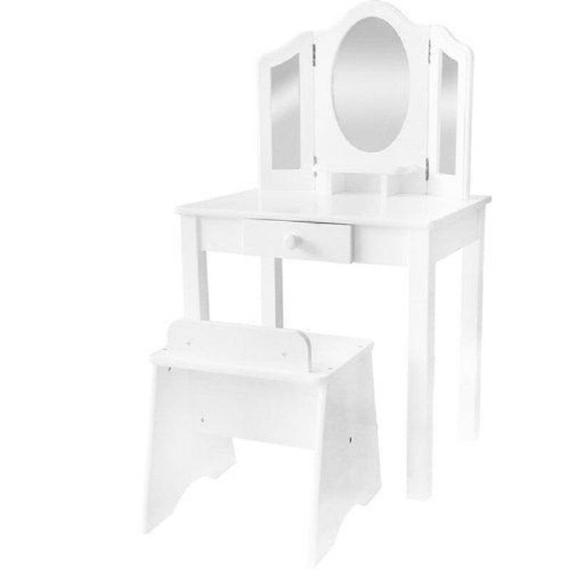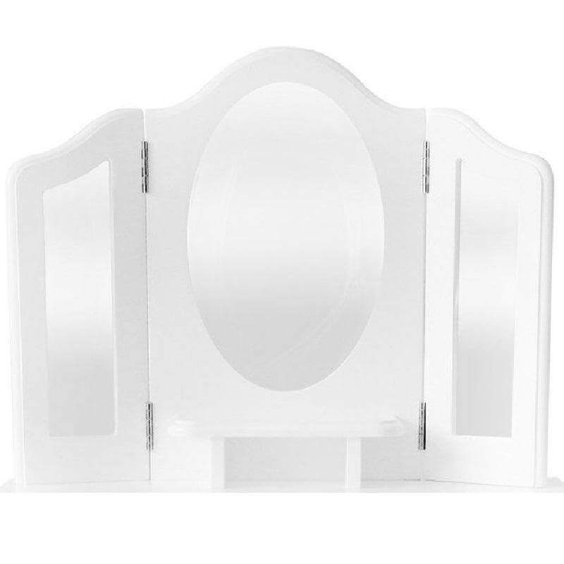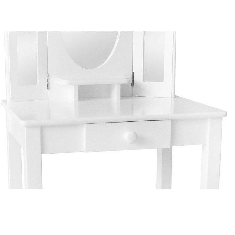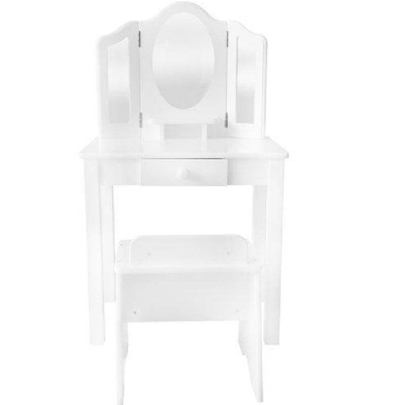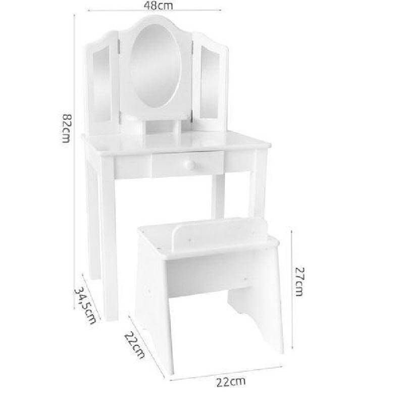 Бяла дървена детска тоалетка с 3 огледала ще подари часове наред приятни занимания. С тоалетката всяка една малка дама ще може да се приготви за излизане или да се разкраси. Така тя ще прилича на своята майка, а пък знаем, че момиченцата подражават на родителите си. Бяла дървена детска тоалетка с 3 огледала ще развие фината моторика, въображение и чувството за естетика в детето. Чудесна идея за подарък за вашата малка принцеса. Можете да разгледате останалите продукти от категорията "Детски аксесоари" ТУК!