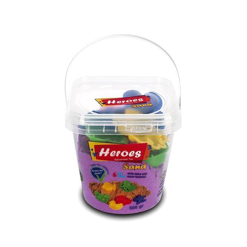 Кофа лилав цвят кинетичен пясък 500 грама с 6 броя фигурки