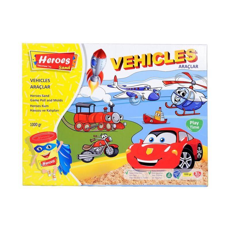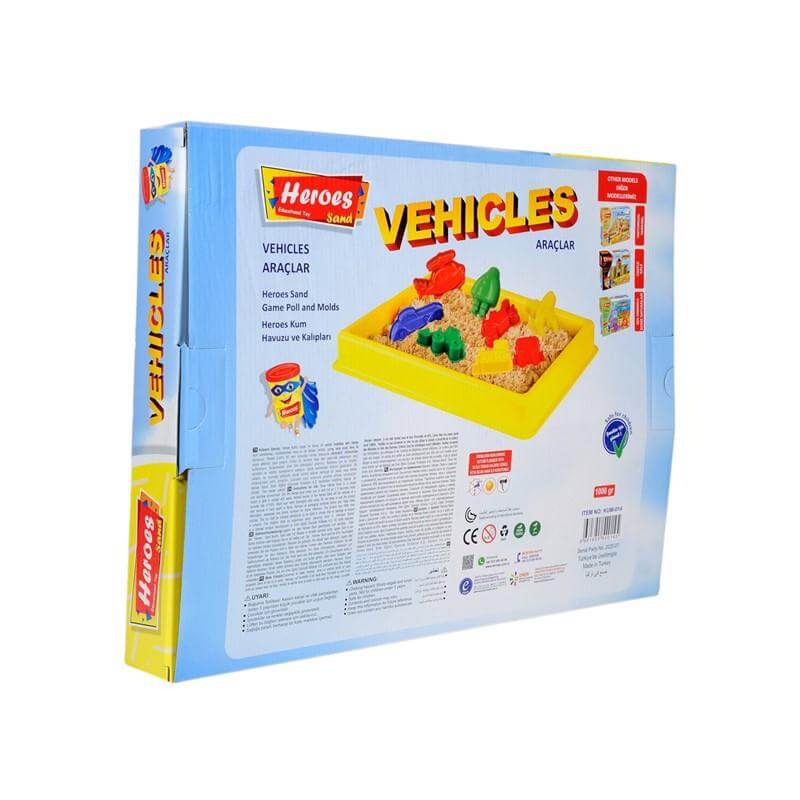 Комплект Колички и самолети, 1500 грама кинетичен пясък, голям басейн, 8 фигурки