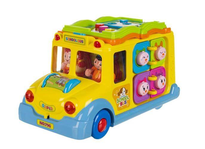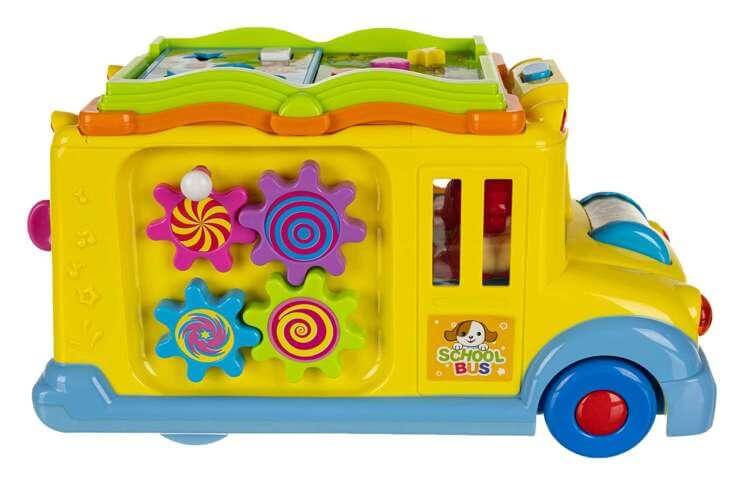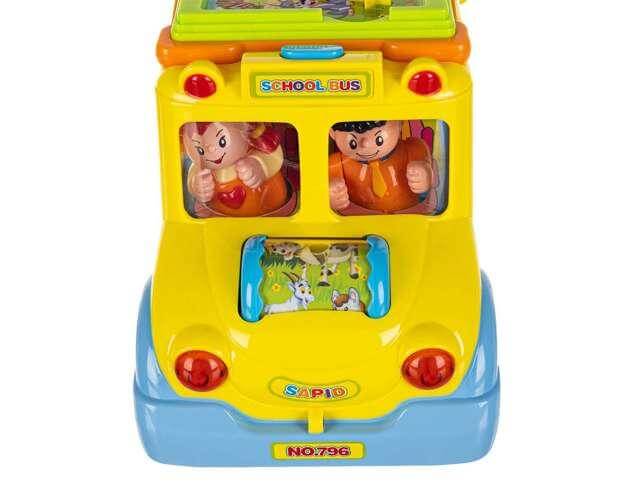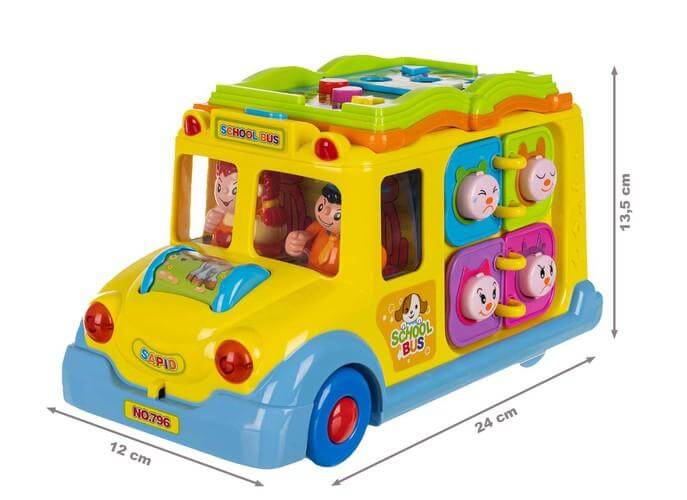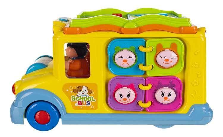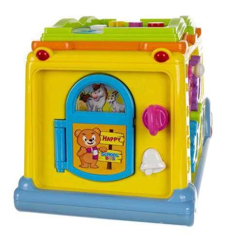 Образователна детска играчка автобус с книжка. Това интерактивно автобусче ще бъде страхотна образователна играчка за всяко малко дете. Играчката със сигурност ще изненада малкото дете с интересни и забавни предложения. Стабилната изработка и разнообразието ще го направят любимата играчка на вашето дете за дълго време. Освен страхотна играчка, ще играе и образователна роля в ежедневието на бебето. Благодарение на него детето ще развие своите двигателни умения. Освен това ще тренира паметта и използването на сетивата като слух, зрение и осезание. На всеки етап от играта детето е придружено от весели светлинни и звукови ефекти. Играчката издава много забавни звуци и свири мелодии, което определено прави ученето и играта по-приятни и много по-интересни. Играчката работи на батерии (3x AA не са включени). Разгледайте още продукти в категорията “Образователи играчки” – ТУК!