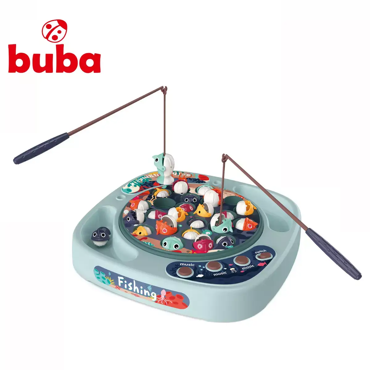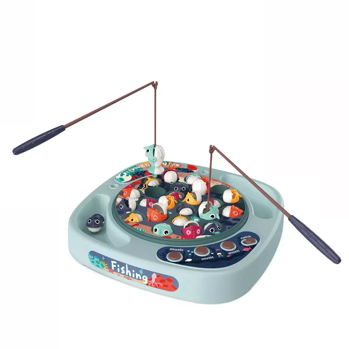 Кой е най-сръчен? Кой ще хване най-много рибки с въдицата? Рибките се движат в кръг, отварят и затварят устата си. Играта развива фината моторика и е подходяща за деца над 3 години. Най-забавната мултиплейър бърза риболовна игра за 1 или 2 играча! Включва моторизирана въртяща се игрална дъска, немагнитни въдици за риболов и рибки. Със закачливи детски мелодии и мигащи LED светлини (музиката може да бъде изключена). Помага на по-малките деца да развият координацията око-ръка и да подобрят способността за реакция. Изработен от висококачествени материали без BPA. Спецификация: Материал: пластмаса Размери: 24,5x24,5x4 см Въдица: 17,9 см Работи с 3 x 1,5 V AA батерии (не са включени). Препоръчва се за възраст над 3 години Пакетът включва: 1 поставка 2 въдици 24 рибки