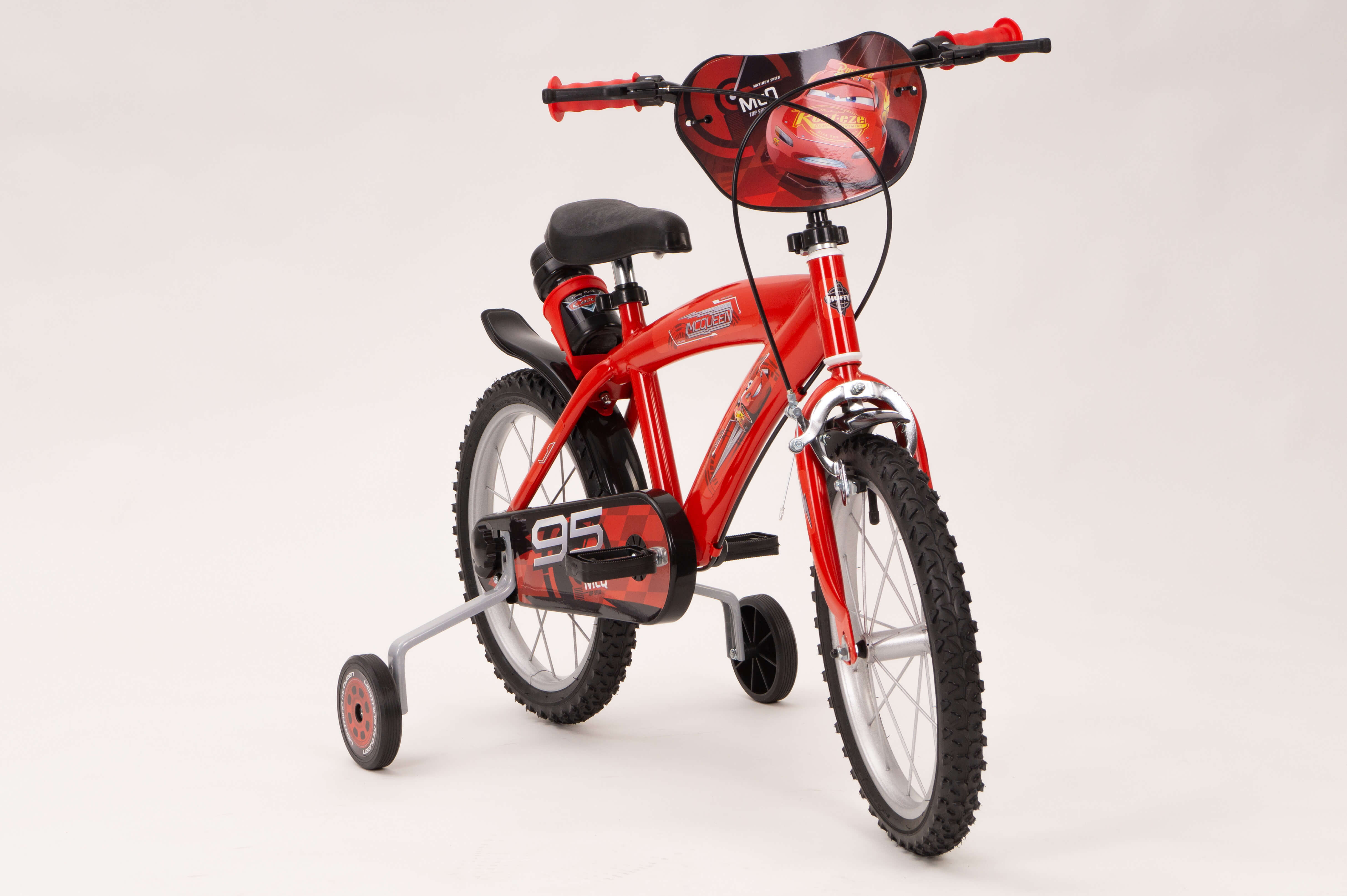 Истински привличащ вниманието велосипед от Disney. - 16 инчови колела - Спирачка на джанта отпред, барабанна спирачка отзад - Подвижни помощни колела - Бутилка с държач С този велосипед в цветен дизайн на Cars от DISNEY, младите състезатели са на първите си обиколки по особено шик и безопасен начин. Благодарение на подвижните помощни колела и регулируемата по височина седалка и кормило, велосипеда расте с размерите и уменията на ездача. Спирачката на джантата отпред и барабанната спирачка отзад, с удобни за децата дръжки на кормилото, гарантират безопасно ускорение. Над веригата е монтиран предпазител, който предпазва от наранявания. По време на обиколки в лошо време калниците предпазват от дъжд и кал. И тъй като от колоезденето се ожаднява, можете да намерите бутилка за вода в държача зад седалката. Така че нищо не стои на пътя на разходките с първия собствен велосипед. Подробности:- Стоманена рамка със стикер в Cars дизайн - Спирачка за джанта отпред, барабанна спирачка отзад, с удобна за деца дръжка на спирачката - Стикер за предните и задните помощни колела - Гуми с дебел профил на ...